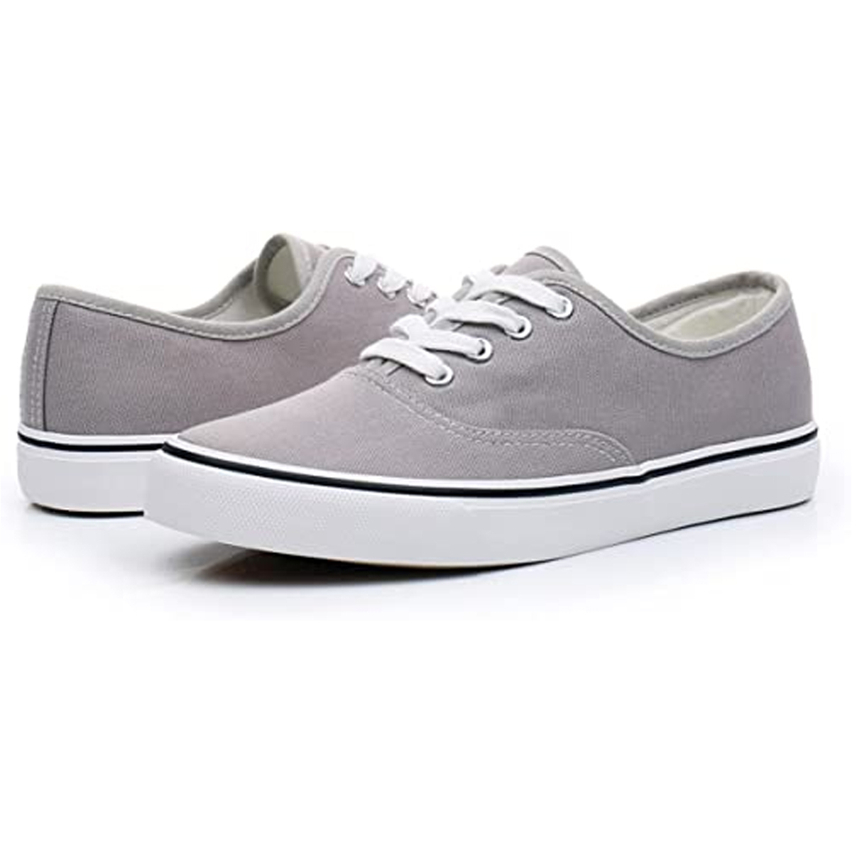 Step up your shoe game with our classic and stylish Low Top Authentic Grey Lace-up Sneakers! These authentic, retro-inspired sneakers will bring a touch of timeless style to any outfit. Featuring a soft insole and lace-up fit, these sneakers offer both comfort and a secure fit. The durable canvas upper and original rubber sole provide flexibility and improved grip for all-day wear. In sleek grey, these sneakers are the perfect addition to your wardrobe. They’ll go with any outfit and add a touch of vintage cool to your look. Whether you’re running errands, hanging out with friends, or just relaxing at home, our Canvas Lace Sneakers in grey will keep you stylish and comfortable all day long.