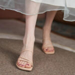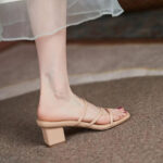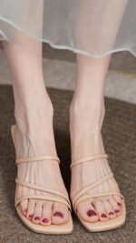 - Four straps, low-block heels, and a matte finish add more elegance and class to its look.