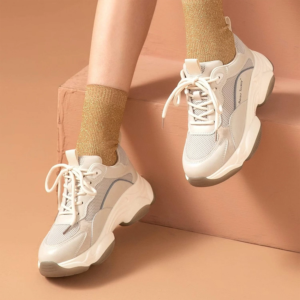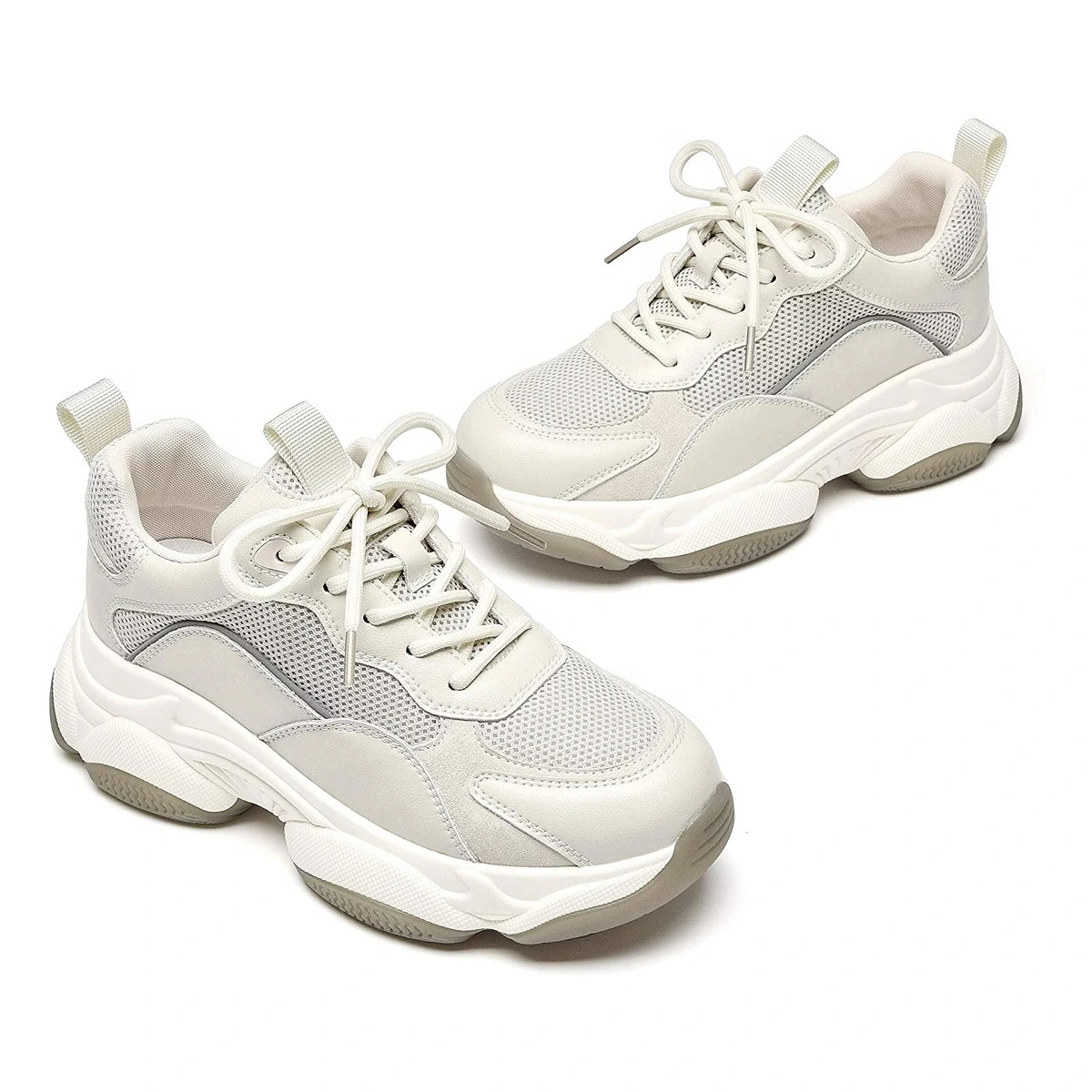 Level up your fashion game with these white & brownish comfortable Beige Contrast XL Sole Trainers. With a thick-sole & lace-up design, it ensures a comfy ground-grip for an irritation-free comfortable walk. Highly recommended to wear with your appealing casual wear, party wear or work pantsuits.