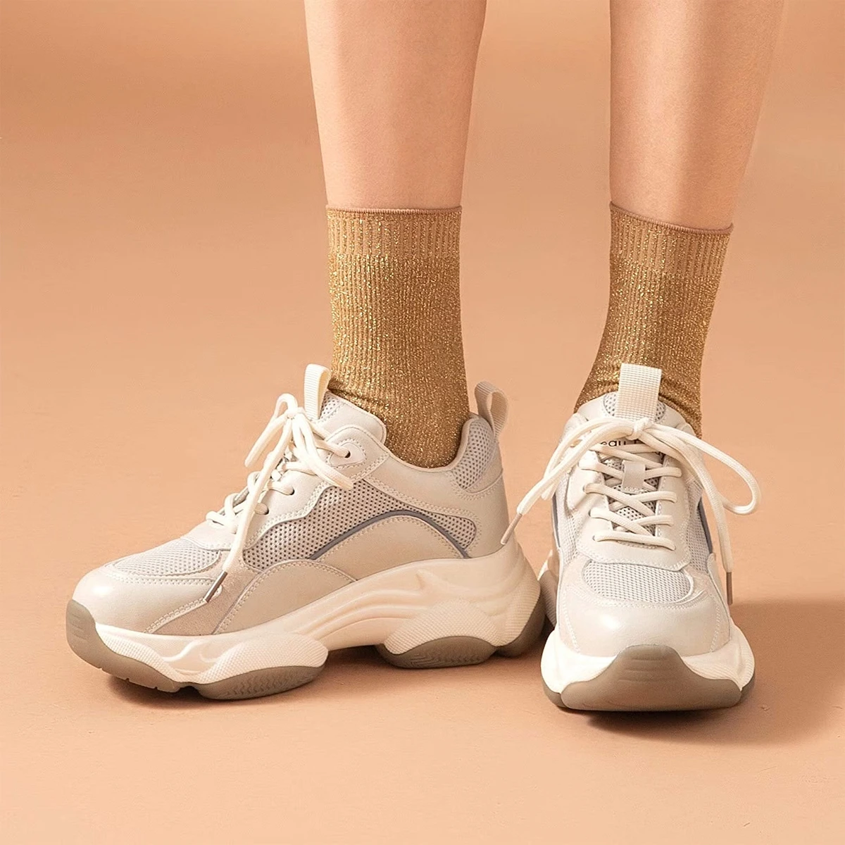 1PCS X Beige Contrast XL Sole Trainers.