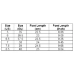 | Size (US/CA, EU) See Size Table |