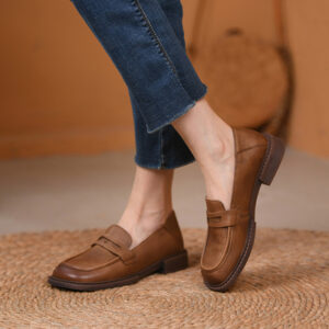 Brogue Carving Penny Caramel Brown Loafers