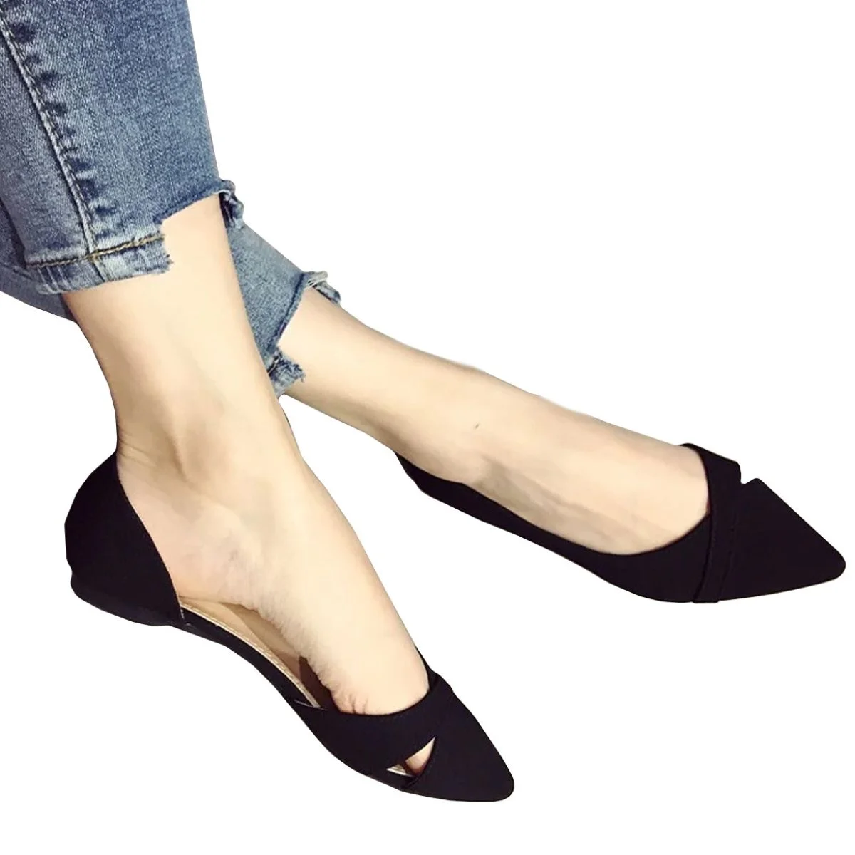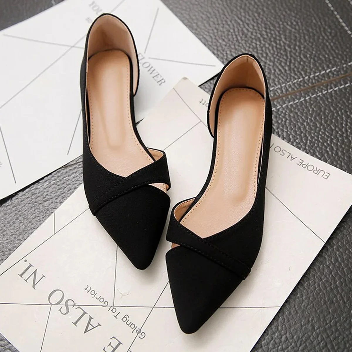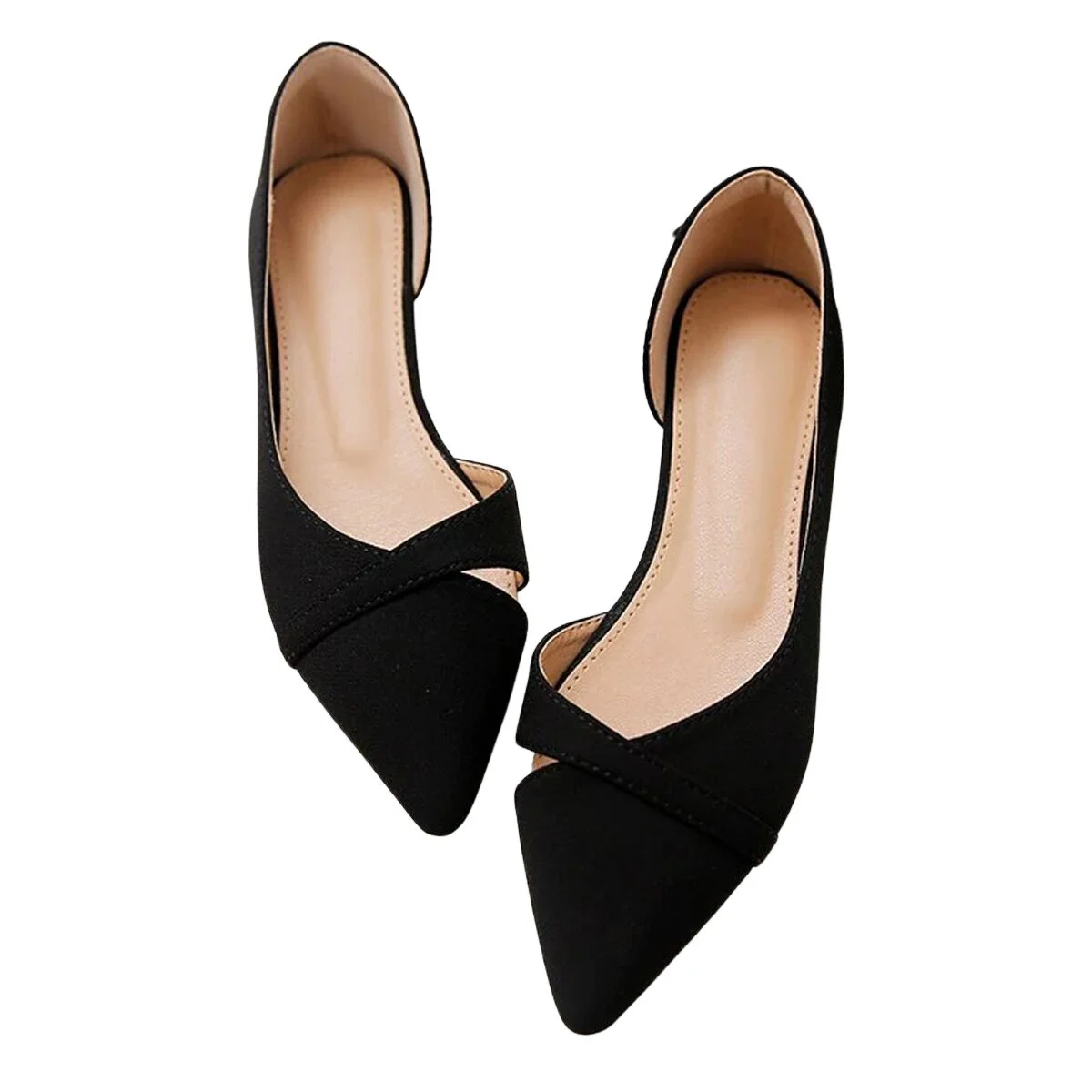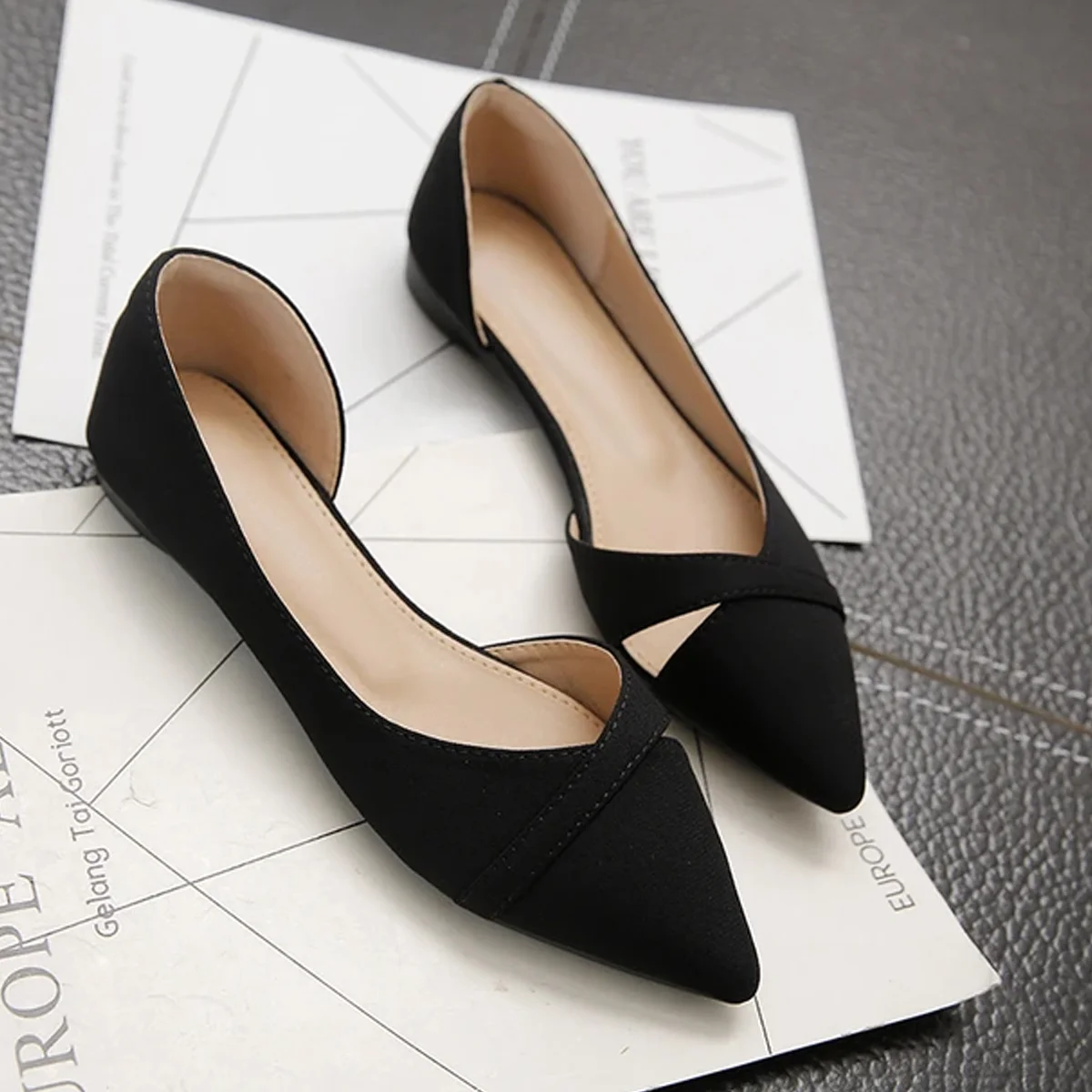 Women’s Black Pointed Toe D’Orsay Cut-Out Flats