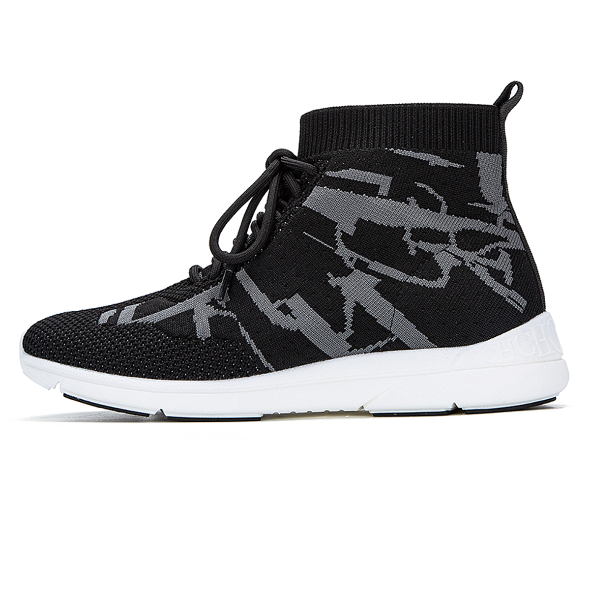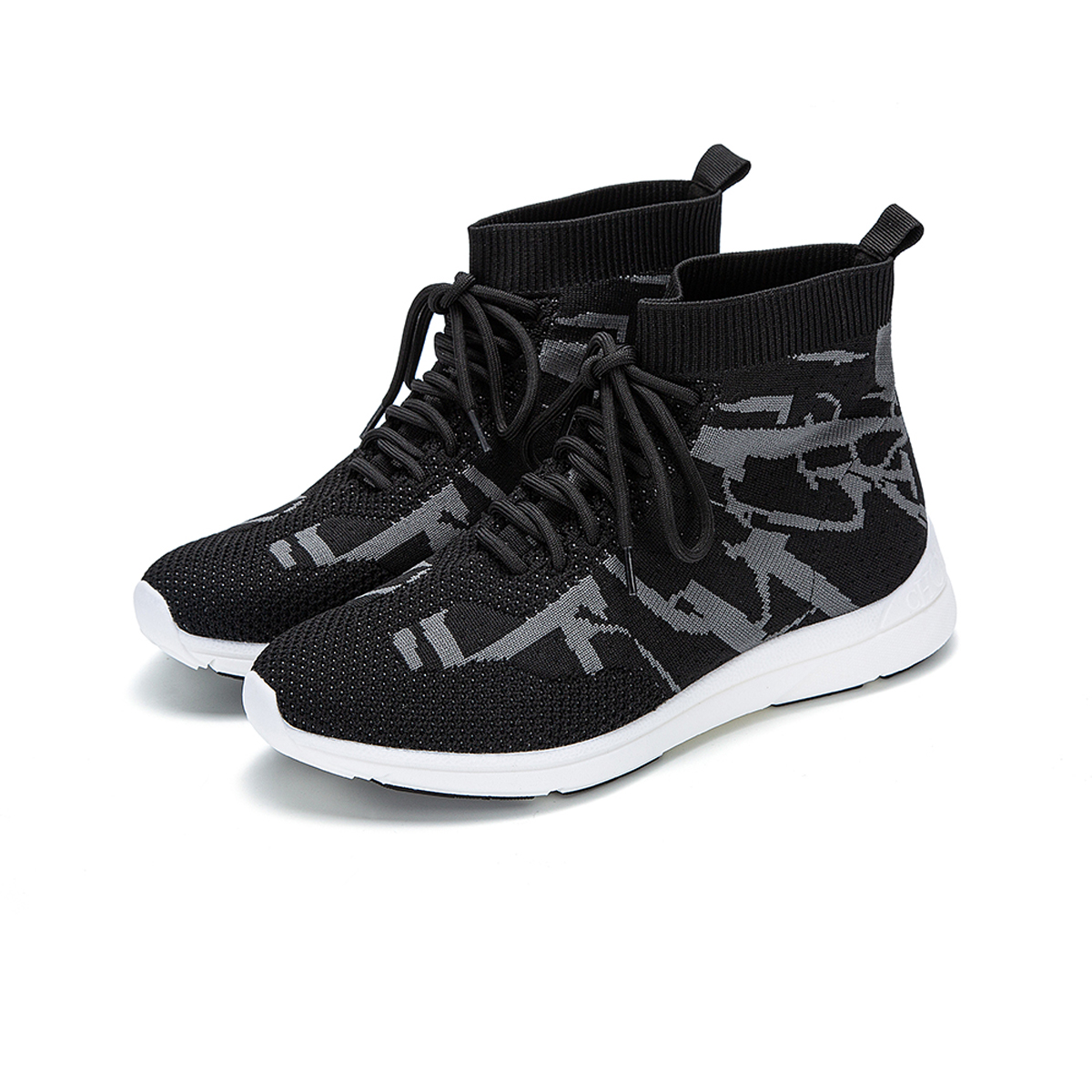 A Charismatic Look with Lace-Up Black Sock Sneakers in Flat 30% OFF!