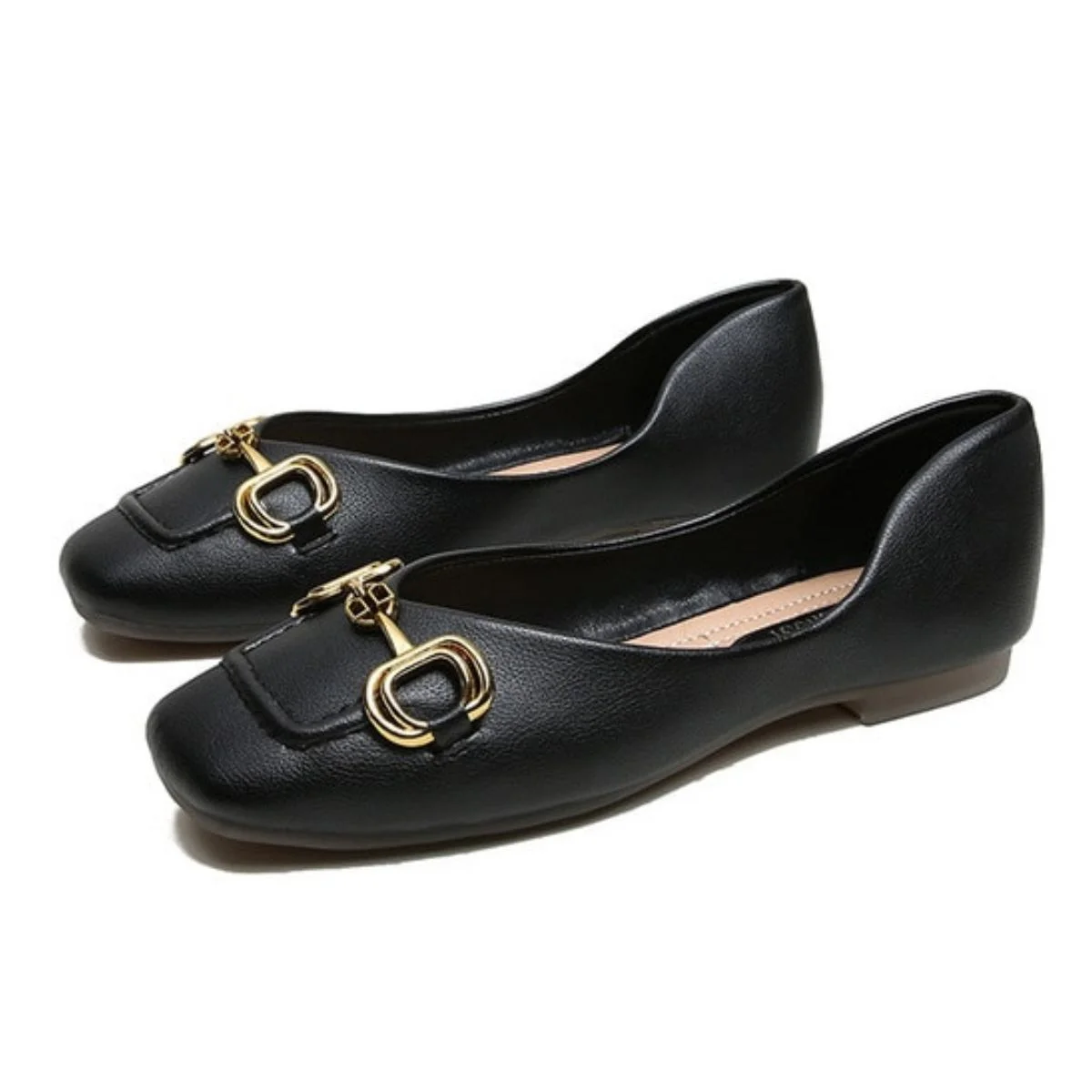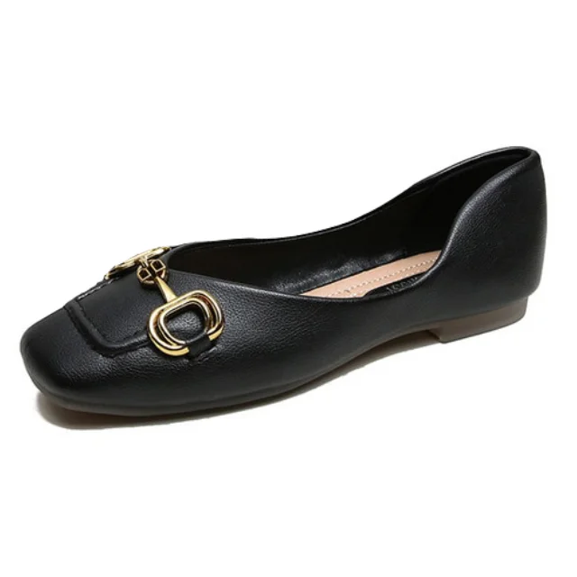 1 PCS x Black Square Toe Horsebit Ballerinas Flats