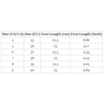 | Size (US/CA) | Size (EU) | Foot Length (cm) | Foot Length (Inch) |