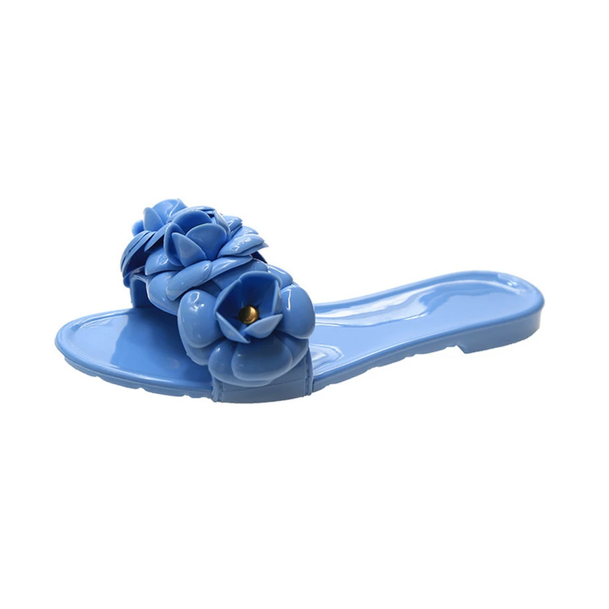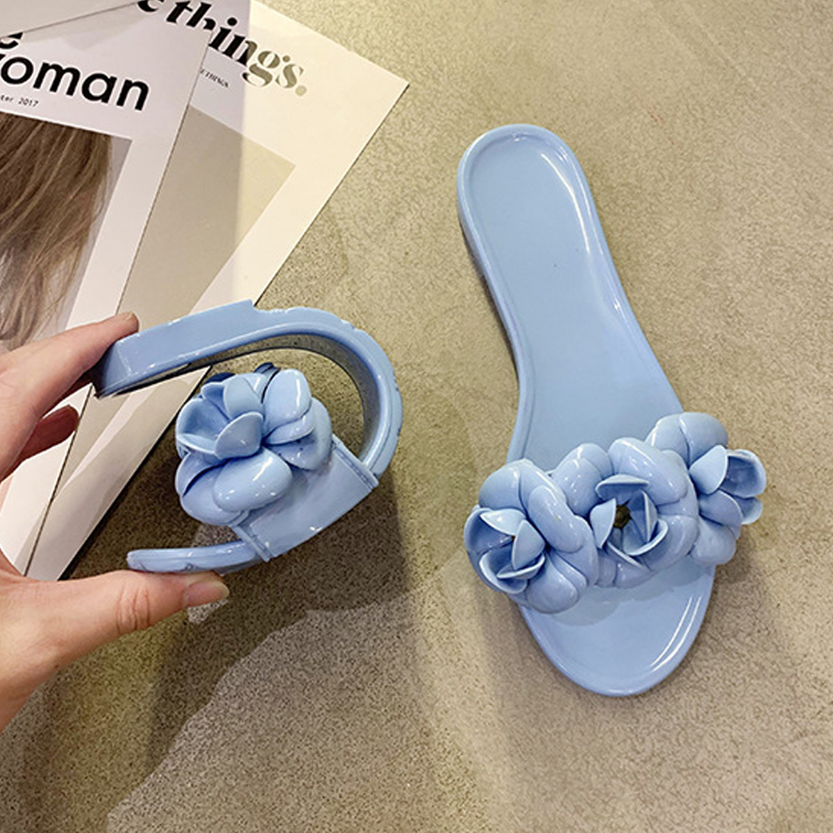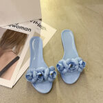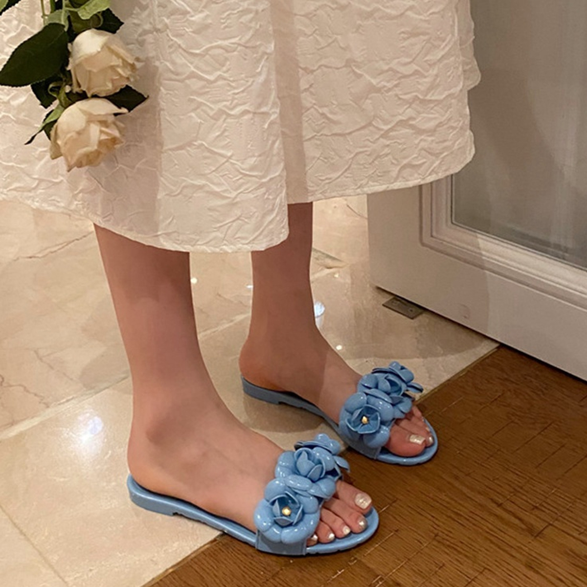 Elegant and feminine footwear adorned with delicate camellia flowers, adding a touch of natural beauty to any outfit