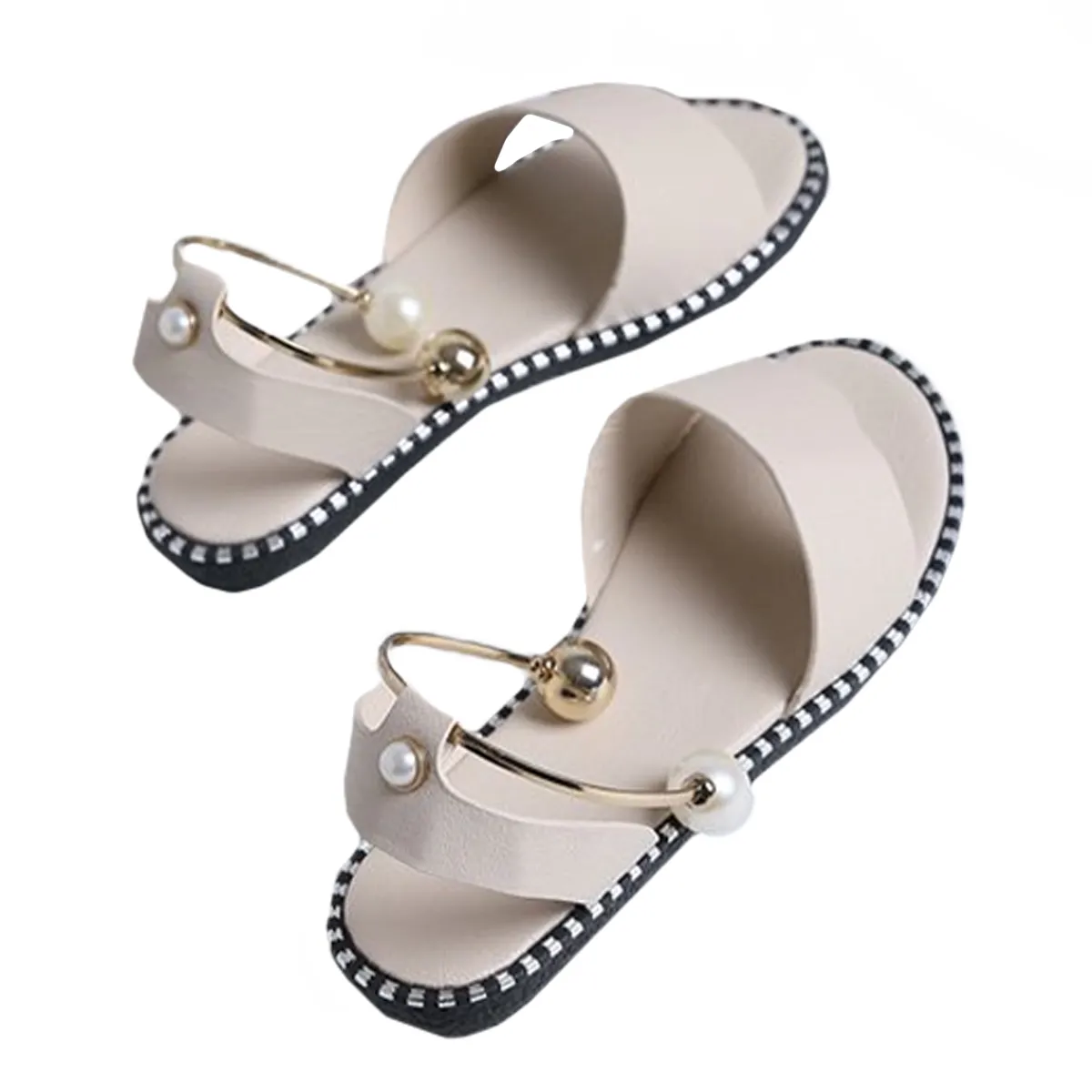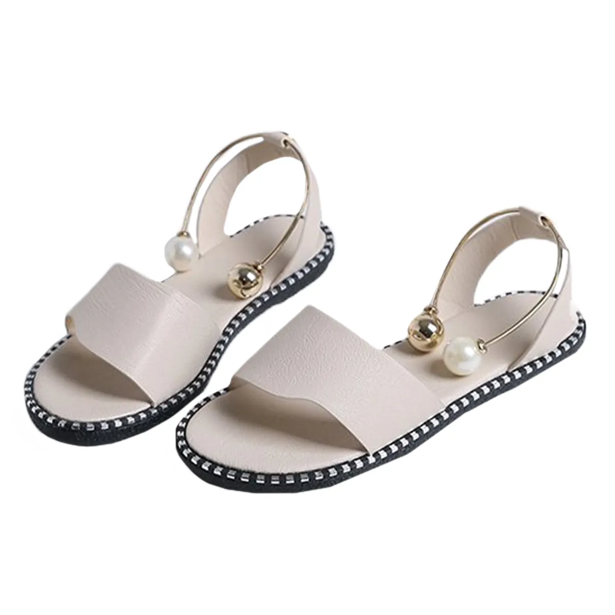 1 PCS x Casual Flat Sandals with Pearl Ring Ankle Strap