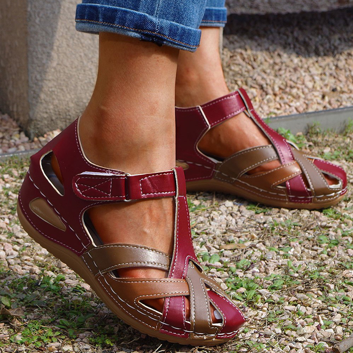 Closed Toe Hollow Wedge Sandals
