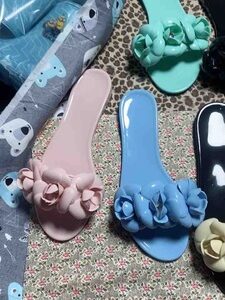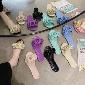 Green – New Ladies Xiaoxiangfeng Camellia Sandals Jelly Drag Outer Worn Women’s Beach Soft Bottom Non-slip Lady’s Sandals and Slippers (Copy)