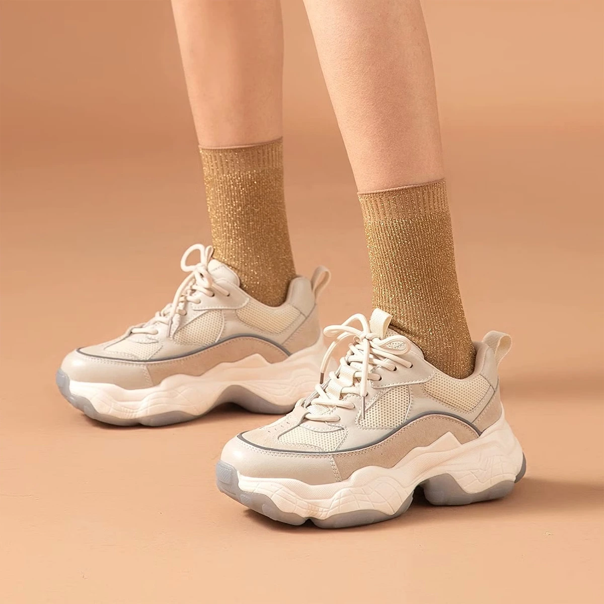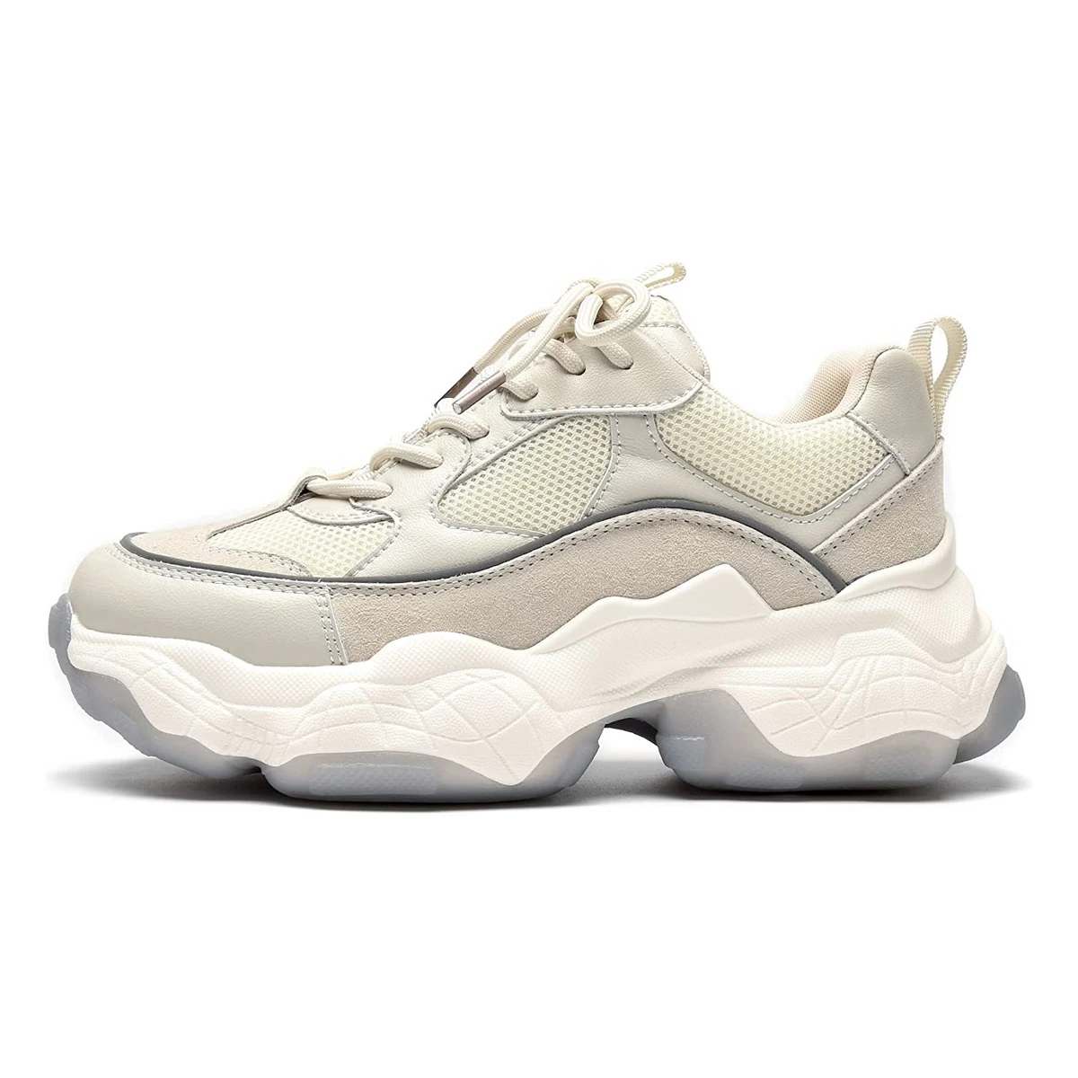 Level up your fashion game with these white & brownish comfortable Grey Contrast XL Sole Trainers. With a thick-sole & lace-up design, it ensures a comfy ground-grip for an irritation-free comfortable walk. Highly recommended to wear with your appealing casual wear, party wear or work pantsuits.