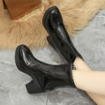 Bring a touch of sophistication and glamour with our classy Black High Heel Chunky Boots. These zip-up ankle boots are crafted from pure PU leather material, ensuring maximum comfort and durability for your feet. The insole is highly soft and cushioned due to the fleece lining, which puts your feet in ultimate comfort. So these chunks are not only stylish but a source of utmost convenience as well, so you can wear them regularly with ease. Wear them with any casual, formal, or party outfit to add a modern touch to your walk.