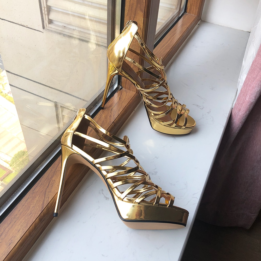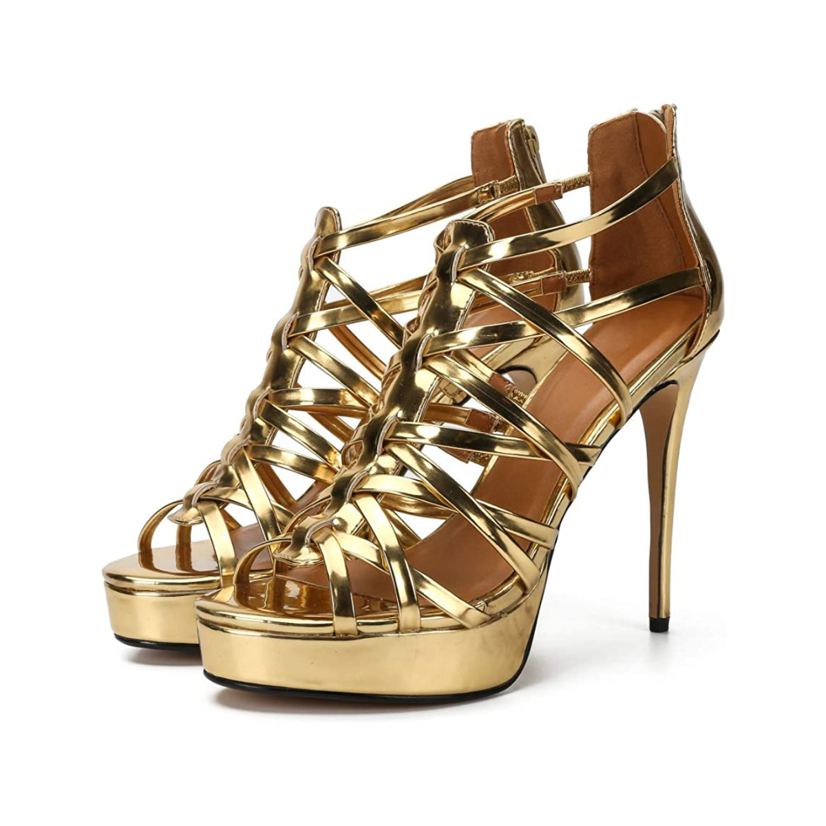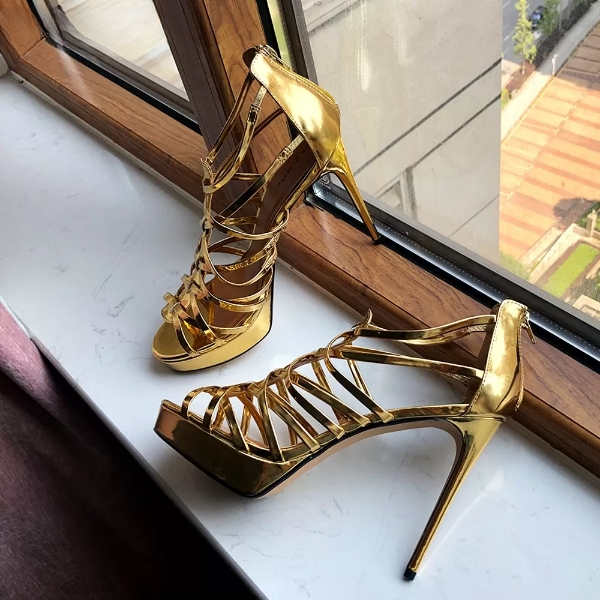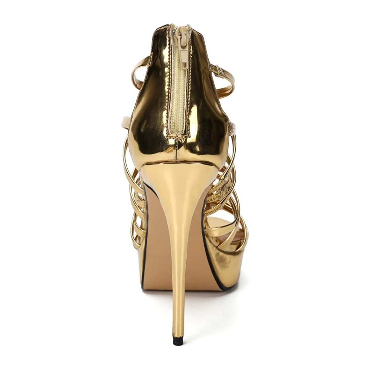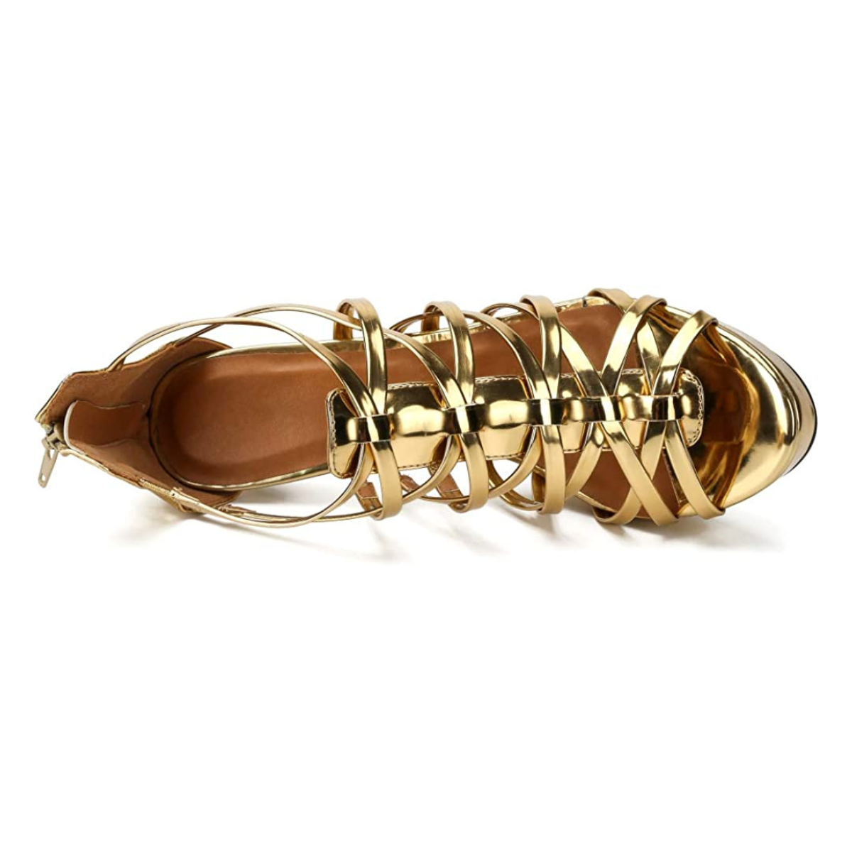 The ankle Gladiator Heels are timeless and luxurious with their modern high heel platform gladiator sandals. They are crafted with a faux leather lining and surface with a metallic sheen for a stunning strappy style. The zipper closure on the back makes it easier to pull on and gives good support to the feet. The insole is comfortable when walking. The rubber sole ensures a stronger ground grip for a slip-free experience. The extra high heel gives a pretty body posture. These Gladiator heels will enhance your look in all fancy and formal party attire. It makes a lovely gift option for heel-loving ladies.