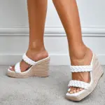 - Upgrade your outlook and style statement with High-Heeled Woven Wedge Slippers