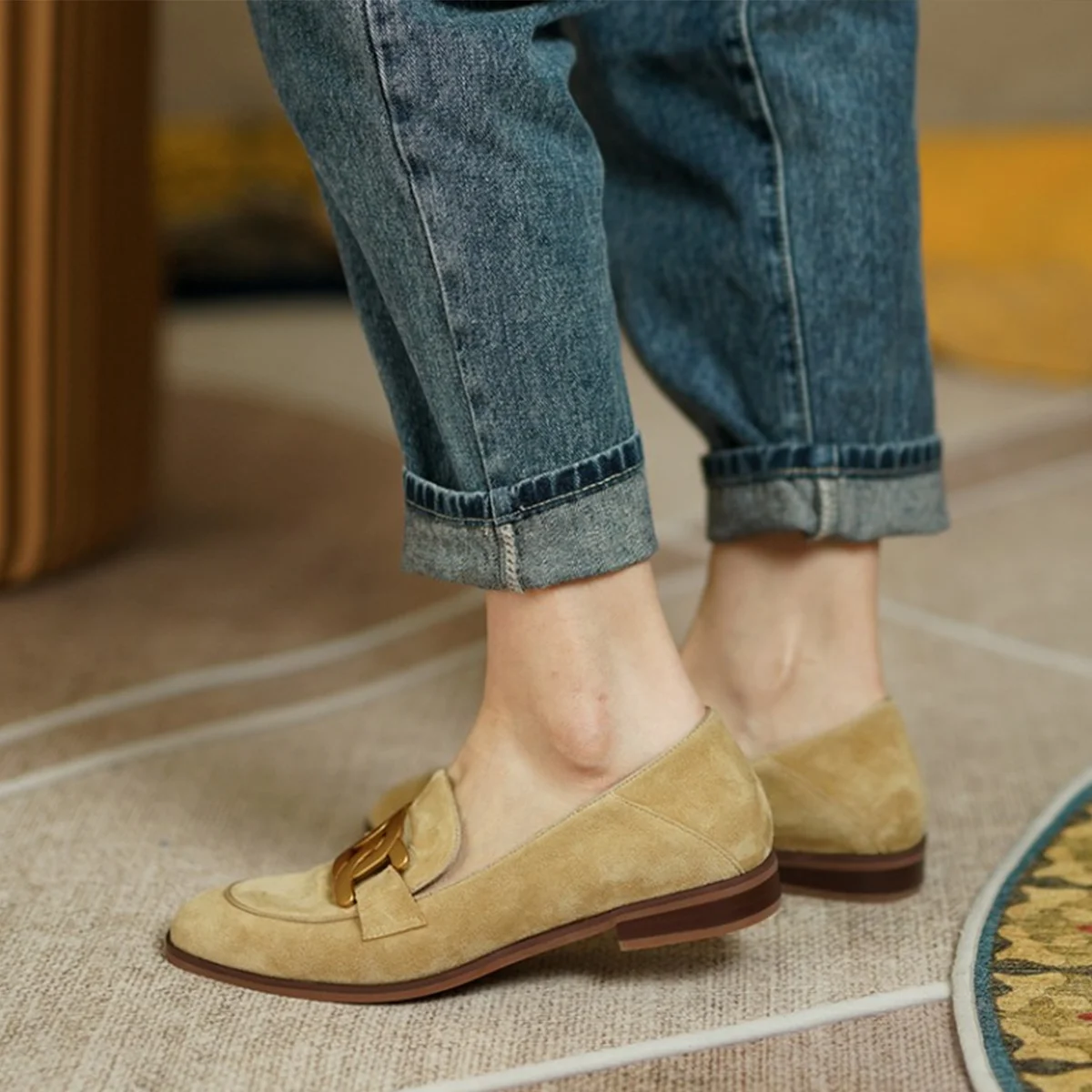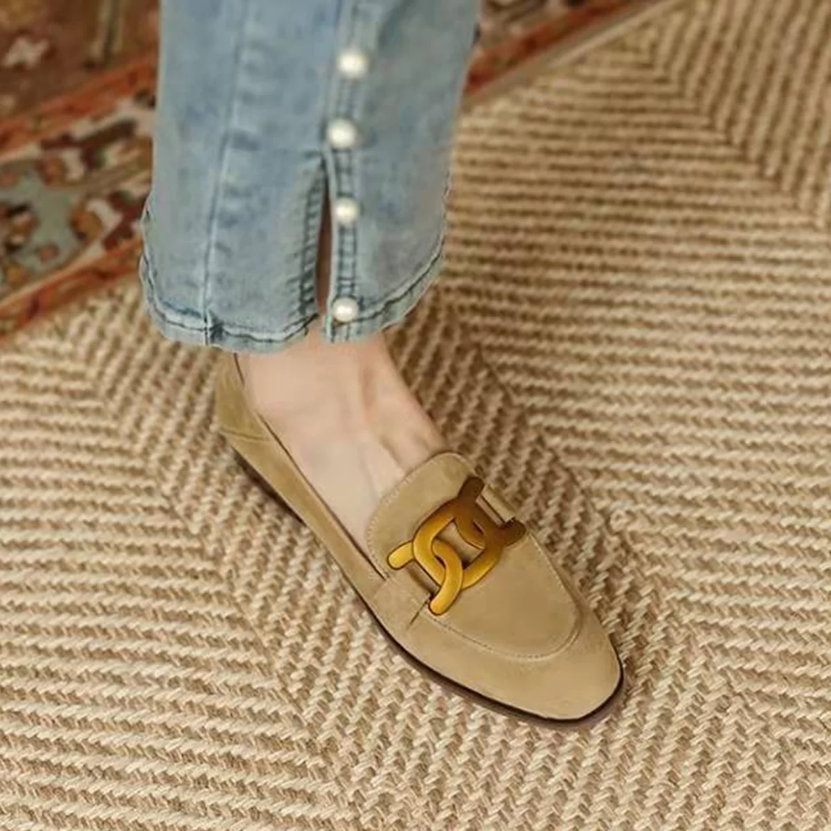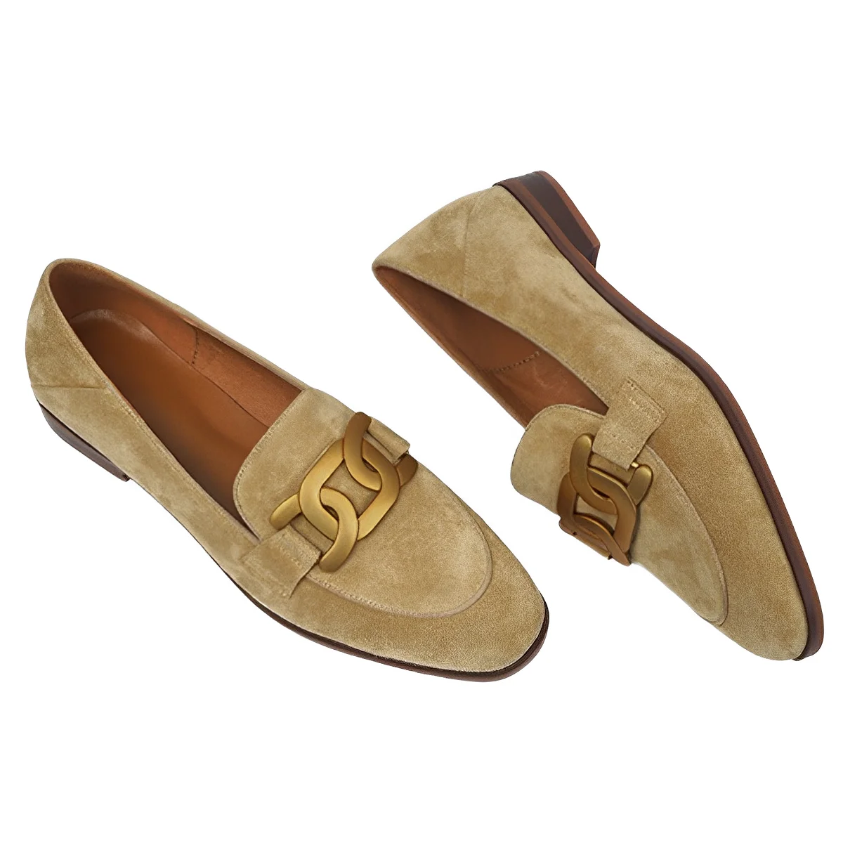 1PCS X Light Brown Kate Embellished Suede Loafers