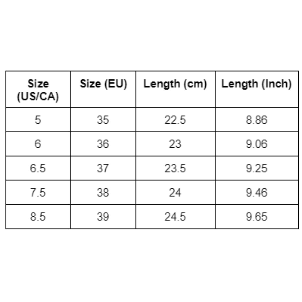 Size (EU) | Length (cm) | Length (Inch) |