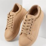 Women’s Lace-up Metal Chain Light Brown Casual Sneakers