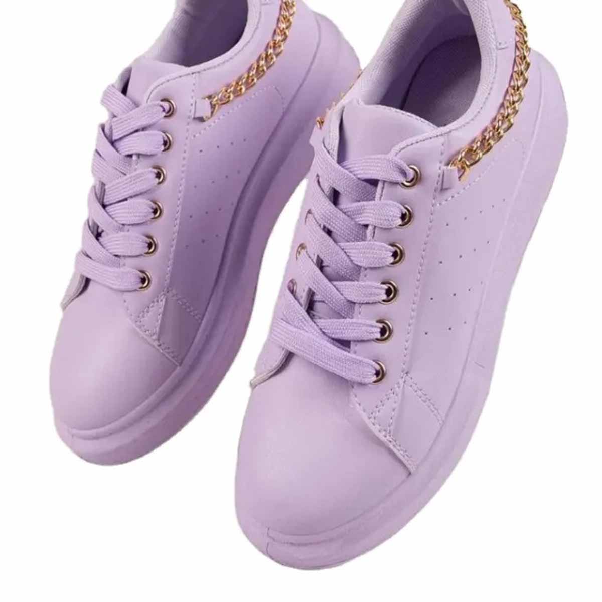 - Look and feel your best in these classy Lace-up Metal Chain Violett Casual Sneakers