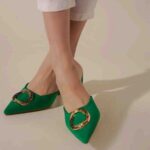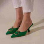 I'm in love with my new Green Mule Heels! The rhinestone buckle adds an elegant touch to the already chic design, and they feel like walking on a cloud.