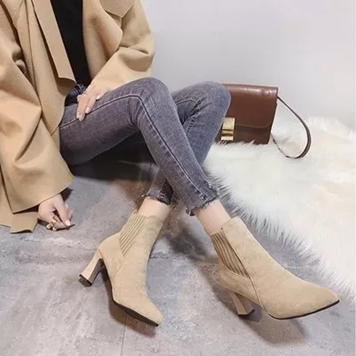 1 PCS x Pointed Frosted Apricot Fashion Boots