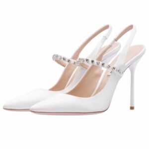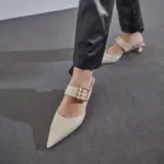 1PCS X Beige Pointed Toe Mule Heel with Double Hole Buckle