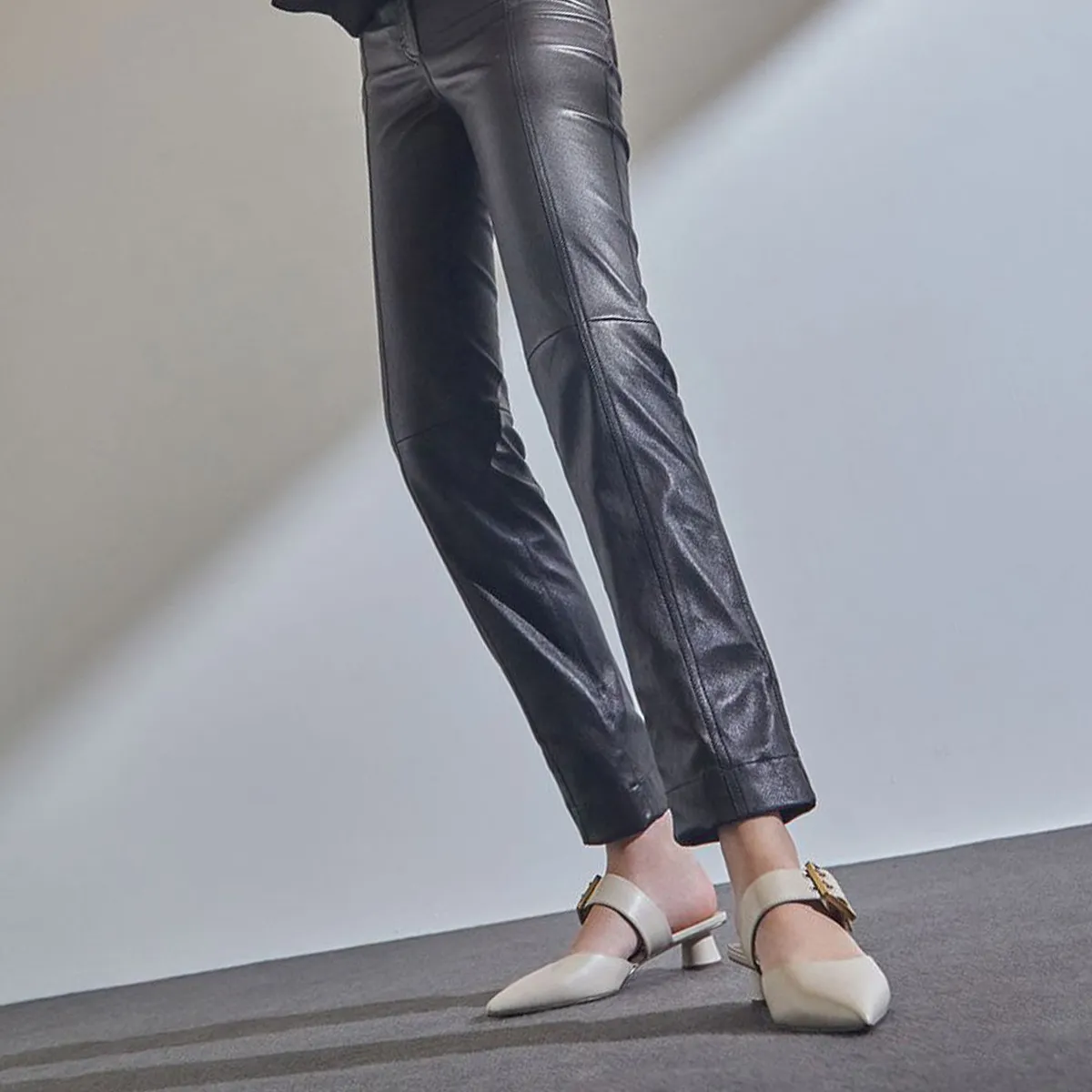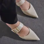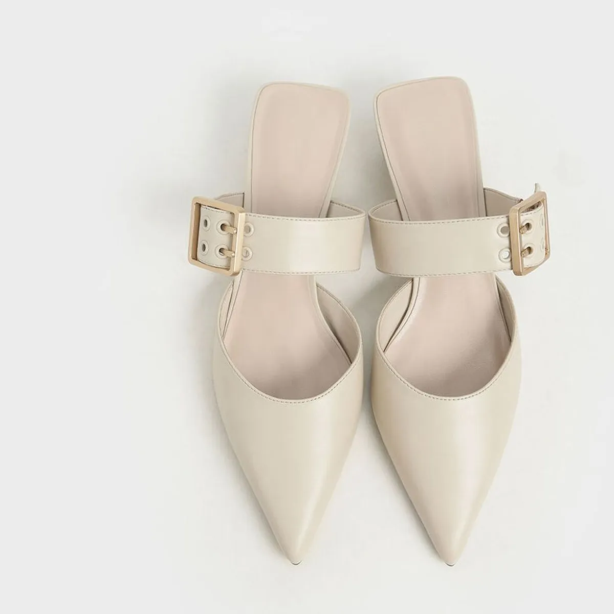 Pointed Toe Mule Heels With Metal Strap Buckle on Flat 30% OFF
