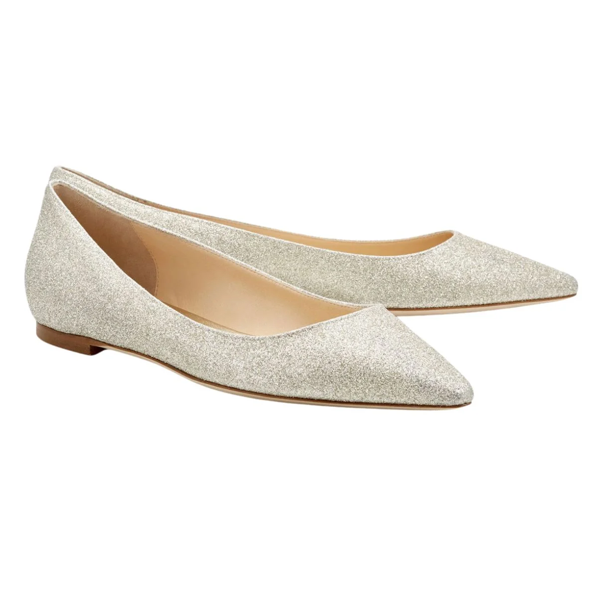 Pointed Toe Champagne Glitter Ballet Flats