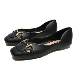 Beige Pointed Toe Chain Buckle Ballet Flats