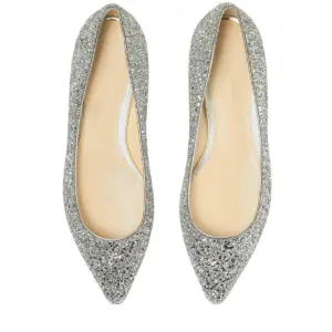 Pointed Toe Silver Glitter Ballet Flats