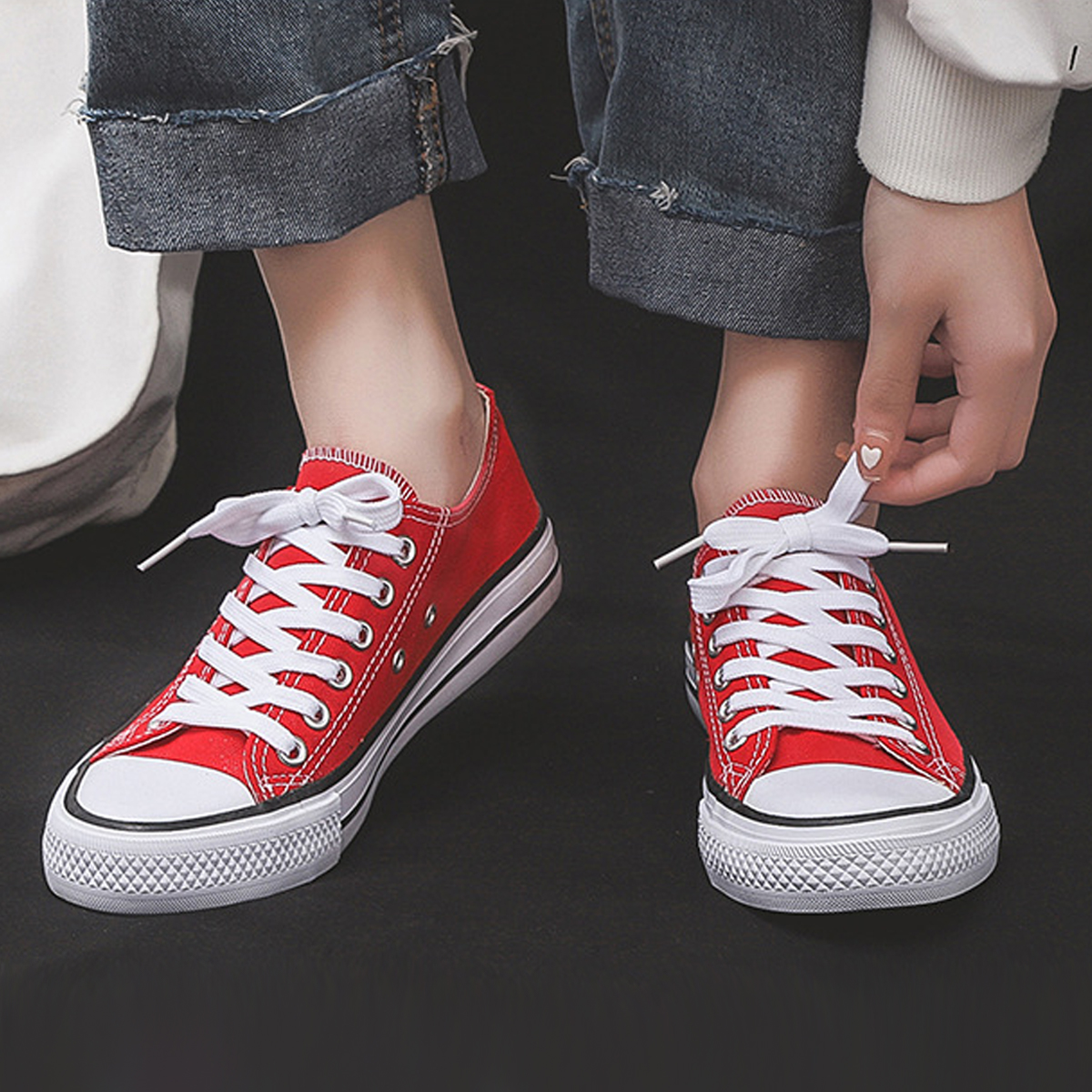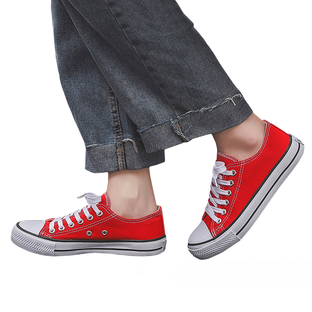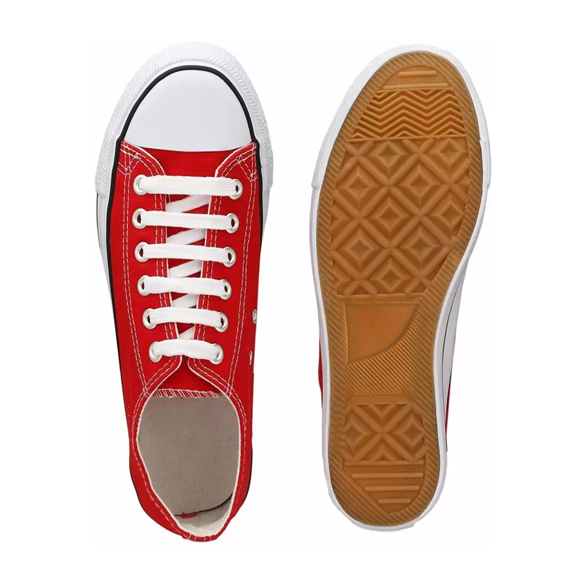These Red Canvas Lace Up Sneaker from our latest collection are the perfect choice for a casual and picture perfect look. They feature a wide fit, canvas upper and insole with a rubber outsole and lace up style for added comfort. These shoes have fine clean stitching and comfortable design, and are timeless and adaptable, perfect for wearing whatever the occasion. This beautiful red color is the ideal gift for all ladies who love canvas shoes.
