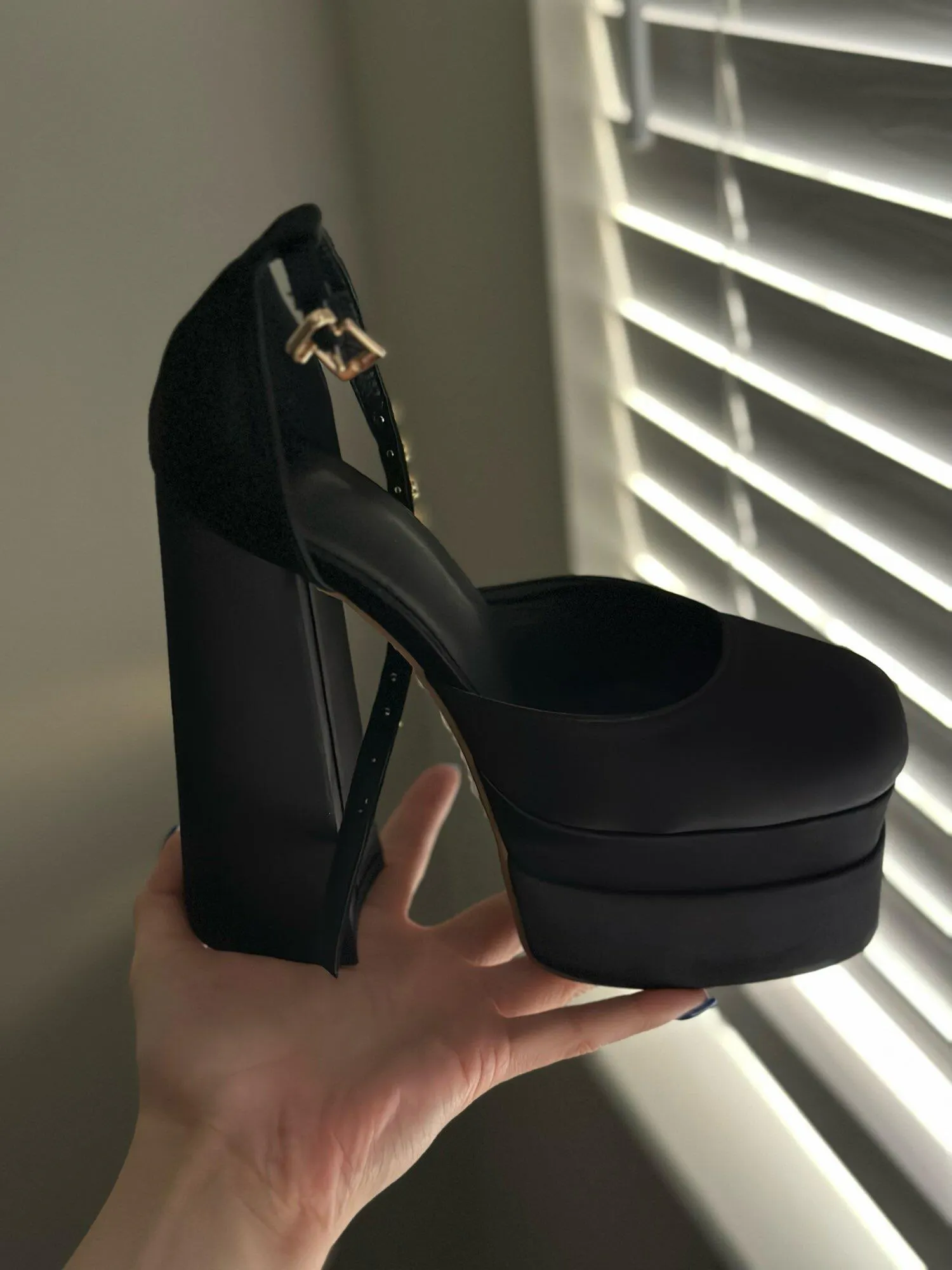 I recently purchased this pair of chunky platform heels and I am absolutely in love with them! The platform is the perfect height and adds a trendy touch to any outfit. I was hesitant about the chunky heel at first, but it turns out it is actually really comfortable to walk in. I've worn these shoes to work and also out on the town and I always receive compliments on them. I feel confident and stylish whenever I wear them. These shoes have become a staple in my wardrobe and I can't recommend them enough.