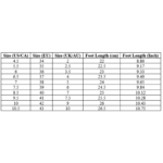 | Size (US/CA) | Size (EU) | Size (UK/AU) | Foot Length (cm) | Foot Length (Inch) |