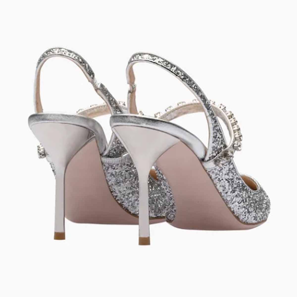 Step Out in Style with Silver Glitter Slingback Heels!