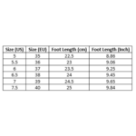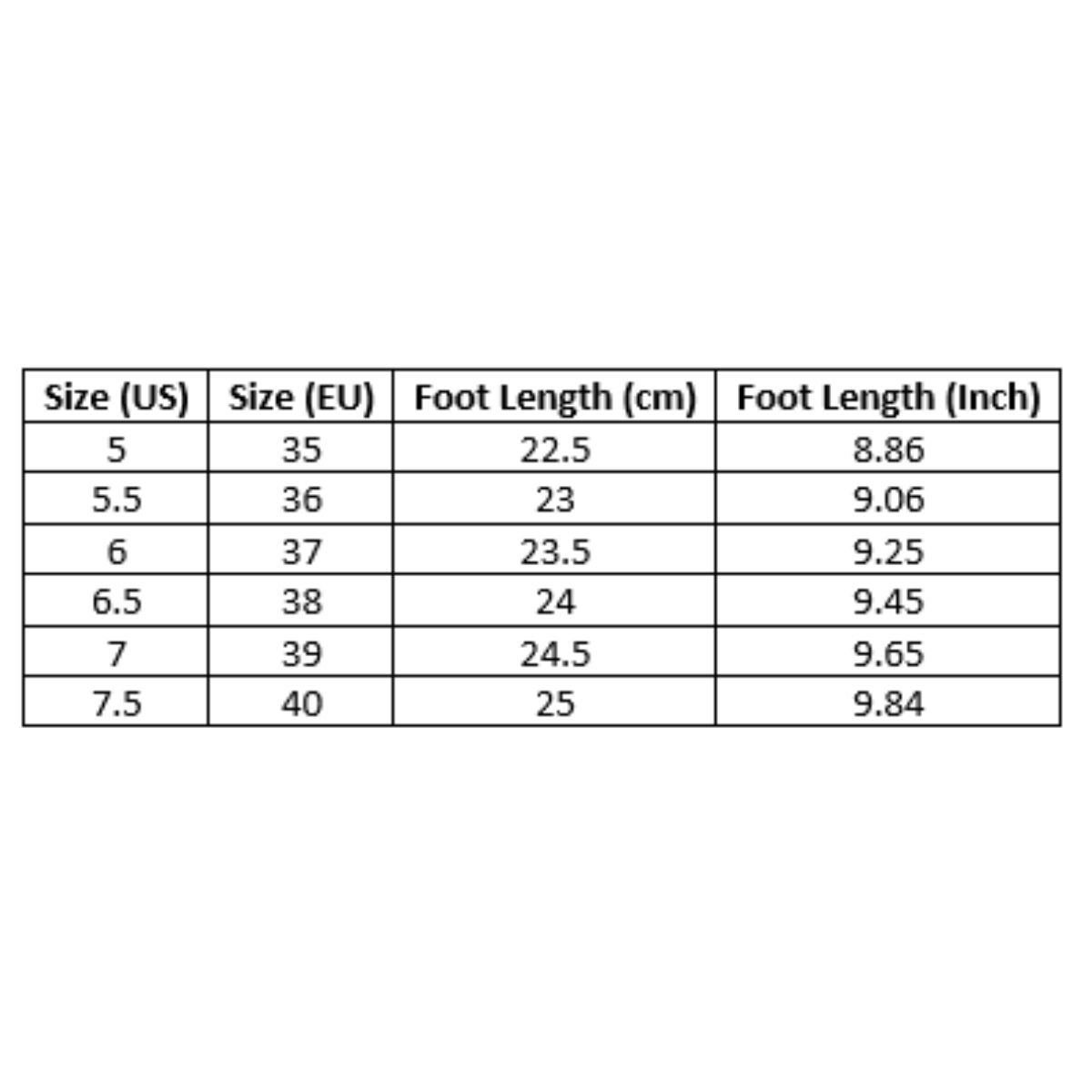 | Size (US) | Size (EU) | Foot Length (cm) | Foot Length (Inch) |