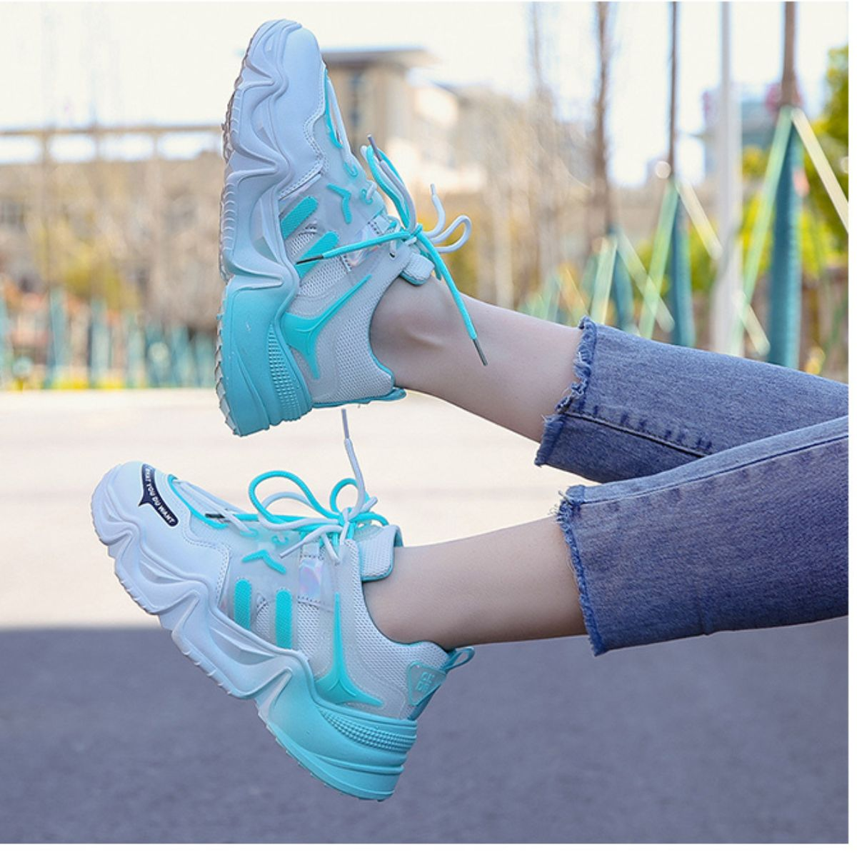 - Wear the bold style statement with Sky Blue Chunky Sneakers