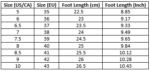 | Size (US/CA) | Size (EU) | Foot Length (cm) | Foot Length (Inch) |