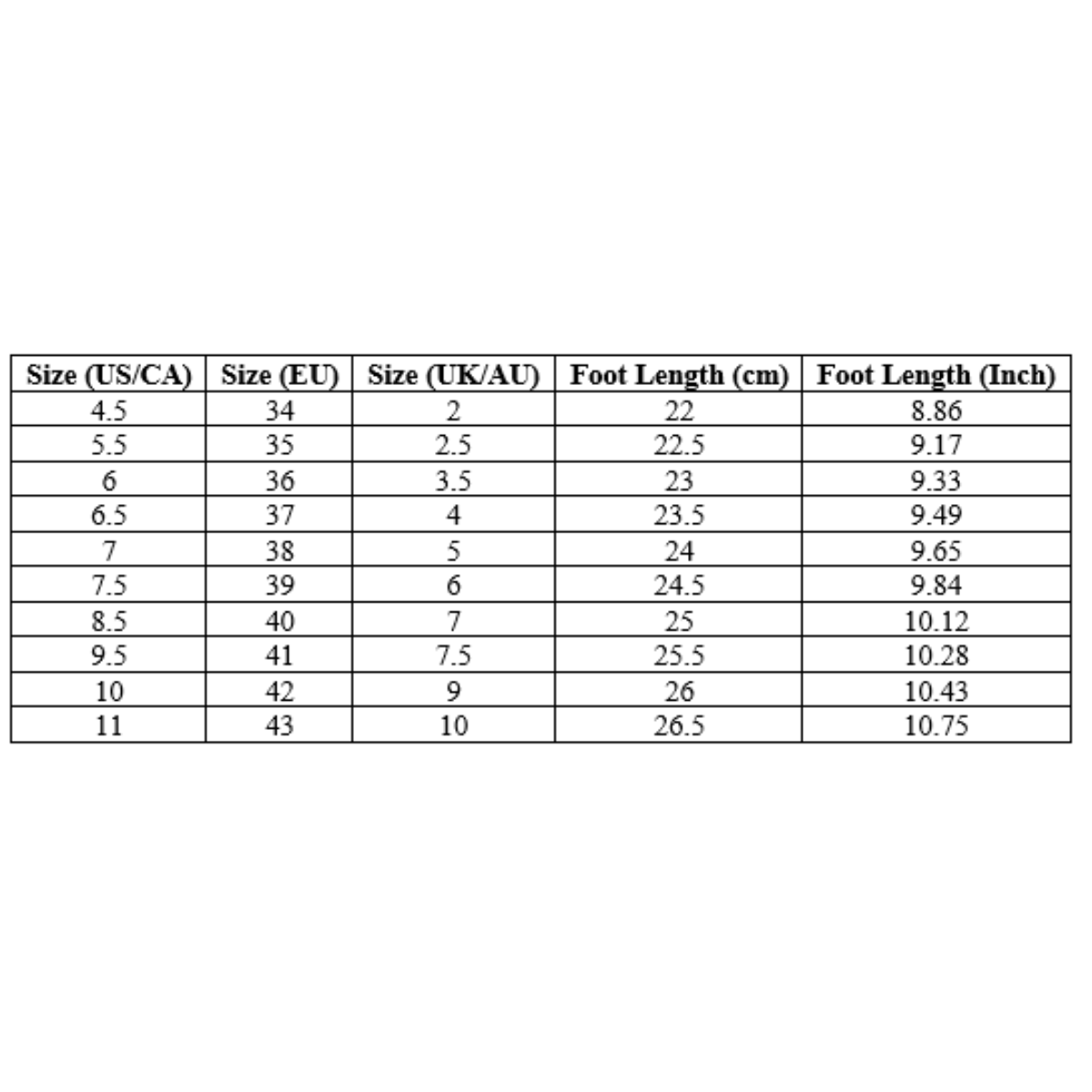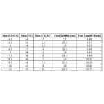 Size (EU) | Size (UK/AU) | Foot Length (cm) |