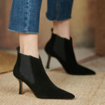 · Make a style statement with your chic look in these Thin Heel Chelsea Suede Boots