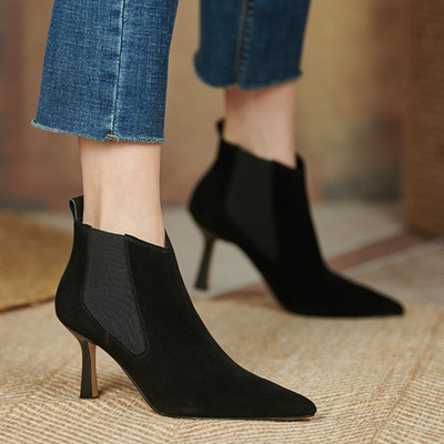 1 PCS x Thin Heel Chelsea Suede Boots