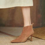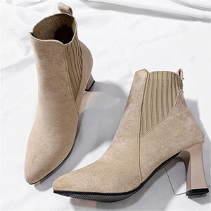 Flaunt your style with this elegant pair of Thin Heel Chelsea Suede Boots. These stylish boots are made with cow suede leather, which gives them a soft and faint look. Its soft leather insole is highly comfortable to walk on. The low and thin stiletto heel design makes it a stunning style statement for all ladies, and it gives you the comfort you need. The rubber outsole provides durable traction when walking on hard surfaces. This pair of heels features elastic side panels and a sleeve closure, which makes them easy to put on. They are perfect for wearing to work or for casual and formal attire.