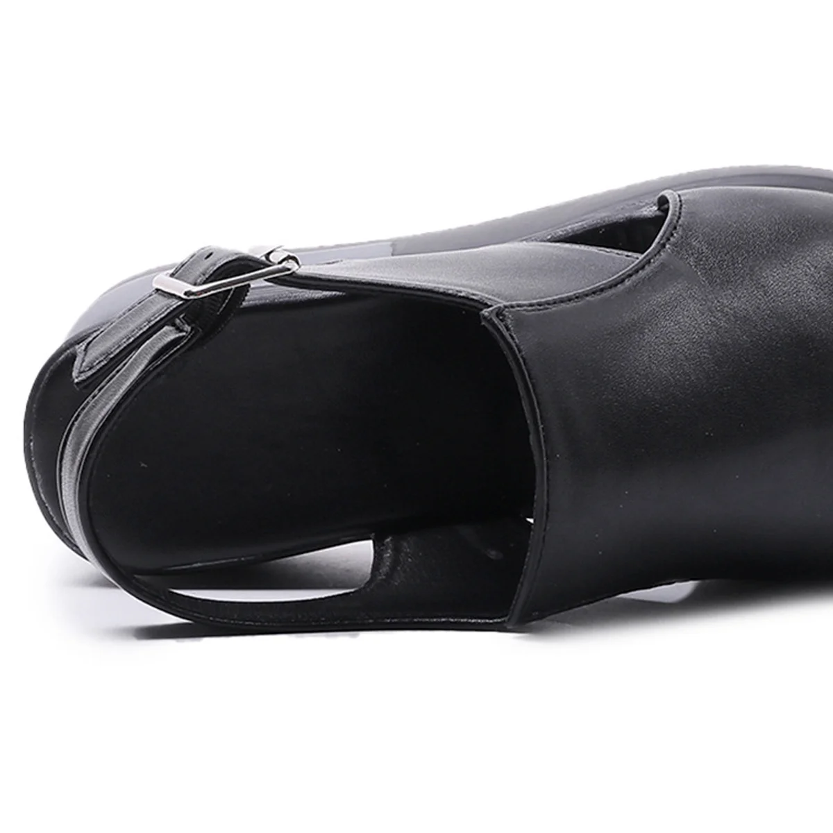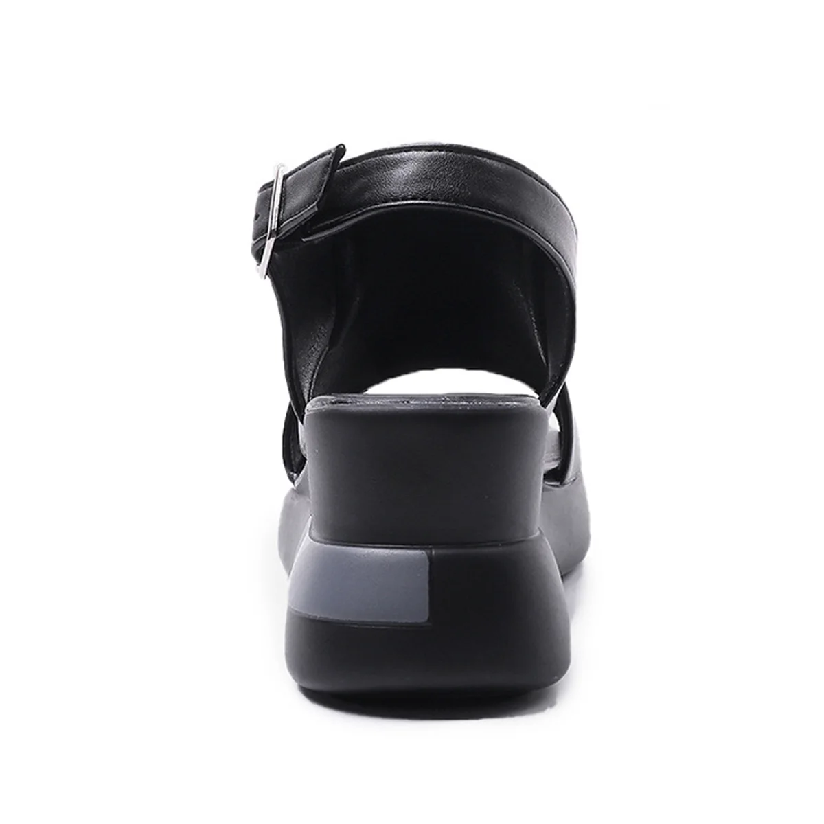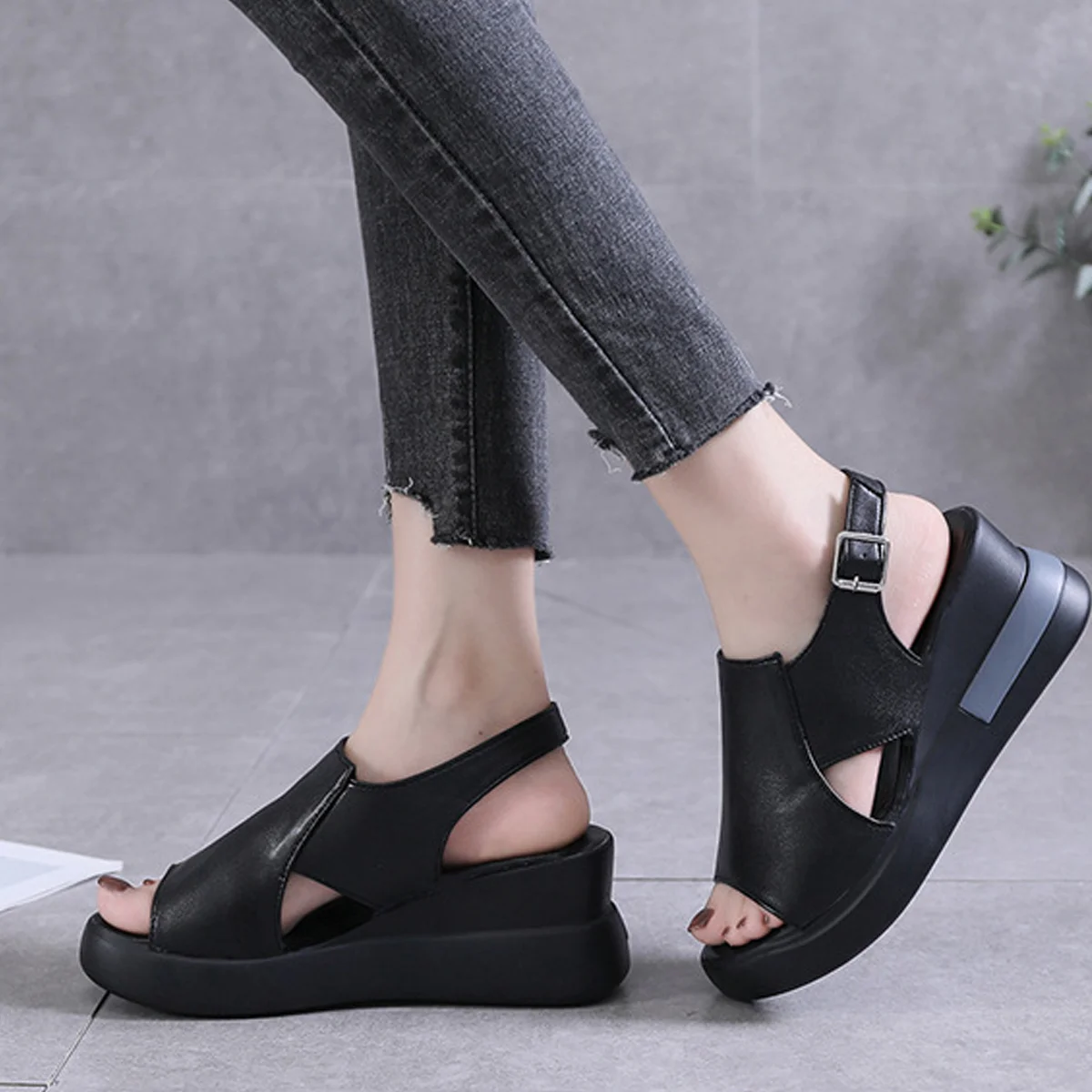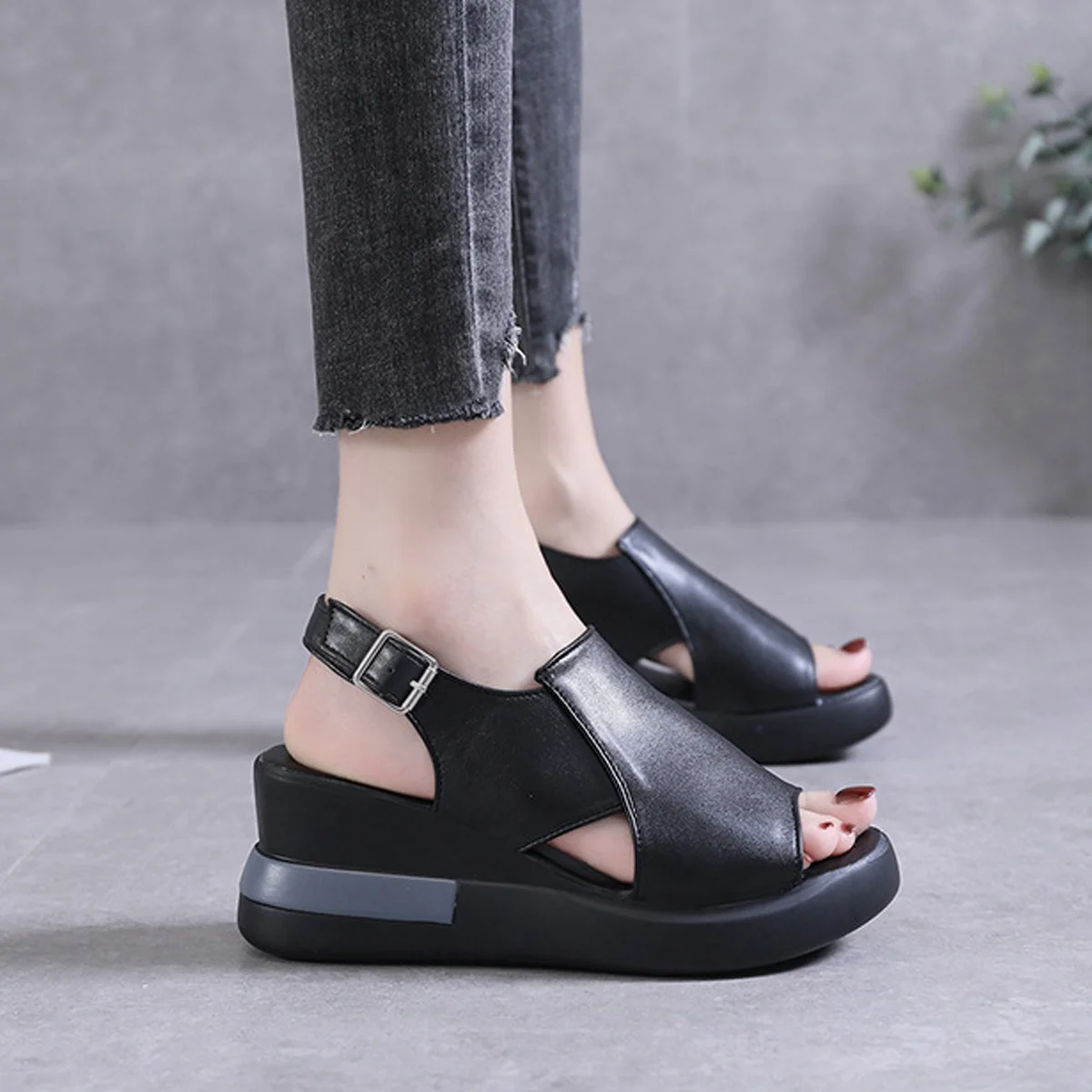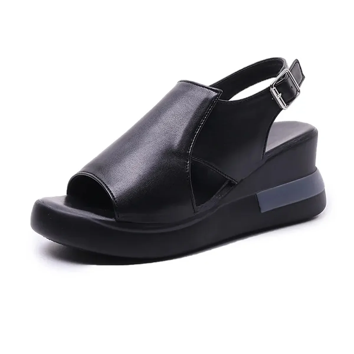 1PCS X Wedge platform black leather sandals