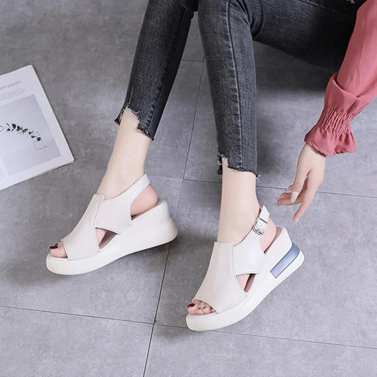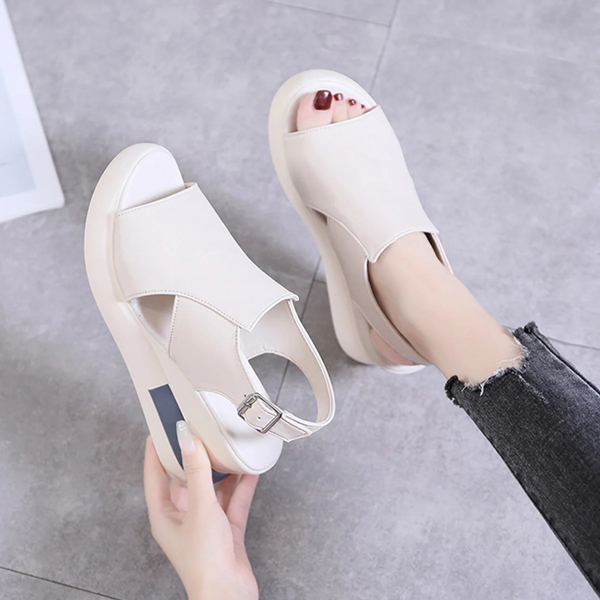 1PCS X Wedge Platform White Leather Sandals