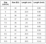 Size (EU) | Length (cm) | Length (Inch) |