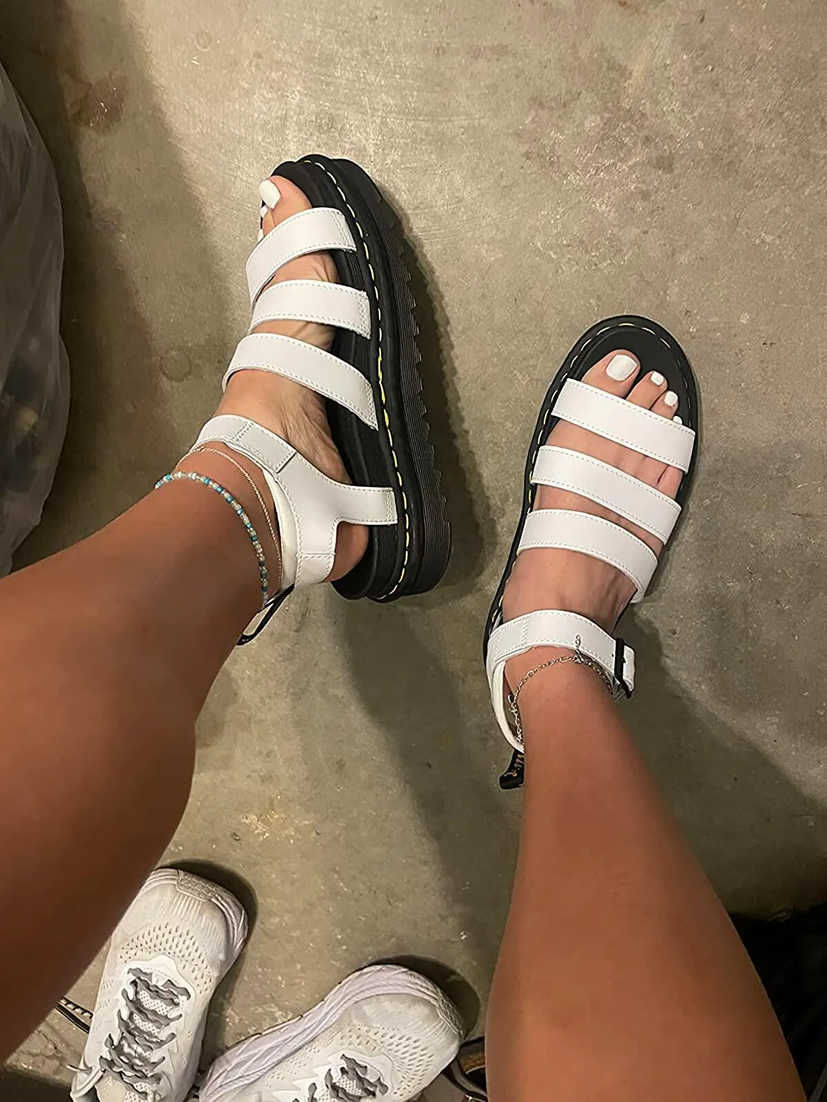 Make a statement effortlessly and hype up your casual personality with these comfortable white open toe Blaire sandals. Crafted elegantly with PU leather, EVA-made thick outsoles, and a buckle strap while keeping up the best quality to add a classic, trendy, and comfy touch Pair well with bright patterns, satin slip-dresses, denim jeans, and contrasting colors.