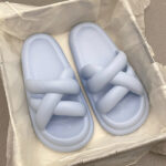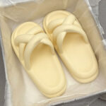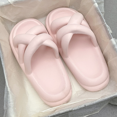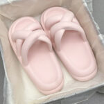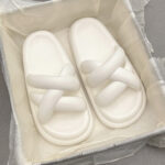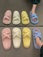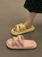 White – Stepping on feces feeling women’s slippers cute thick bottom soft outer wear 2023 new solid color cross hollow home sandals and slippers (Copy)