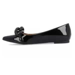 Black Pointed Toe Chain Buckle Ballet Flats