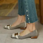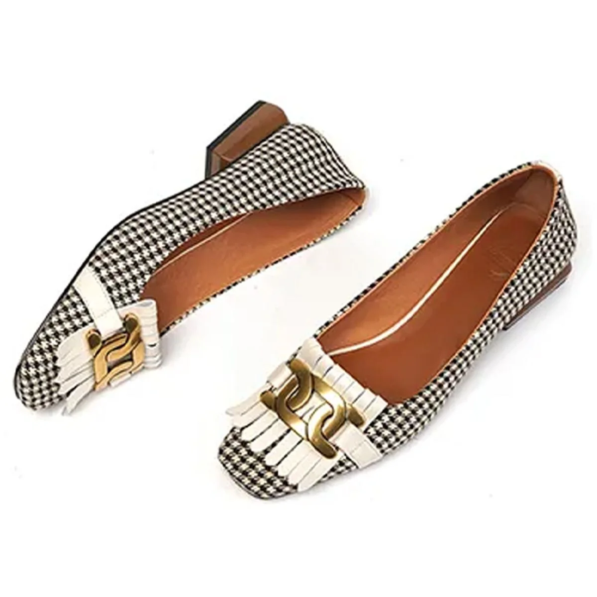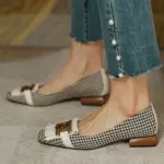 Lift up your personality with these gorgeously lightweight & fashionable Tassel Beads Square Flats of all time! These Checkered flats are crafted perfectly to provide a strong ground grip that ease your walk. Highly recommended for all working ladies out there.