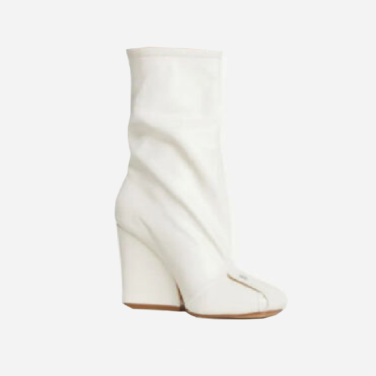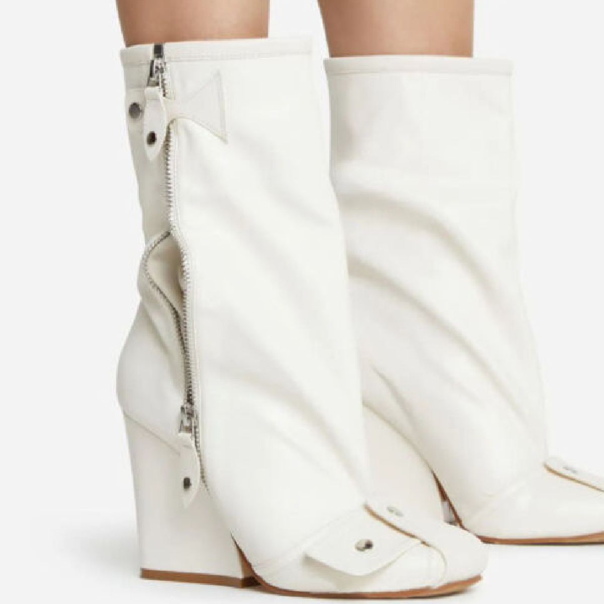 Square Toe Wedge Heel Ankle Boots l White Faux Leather Zip Up Boots