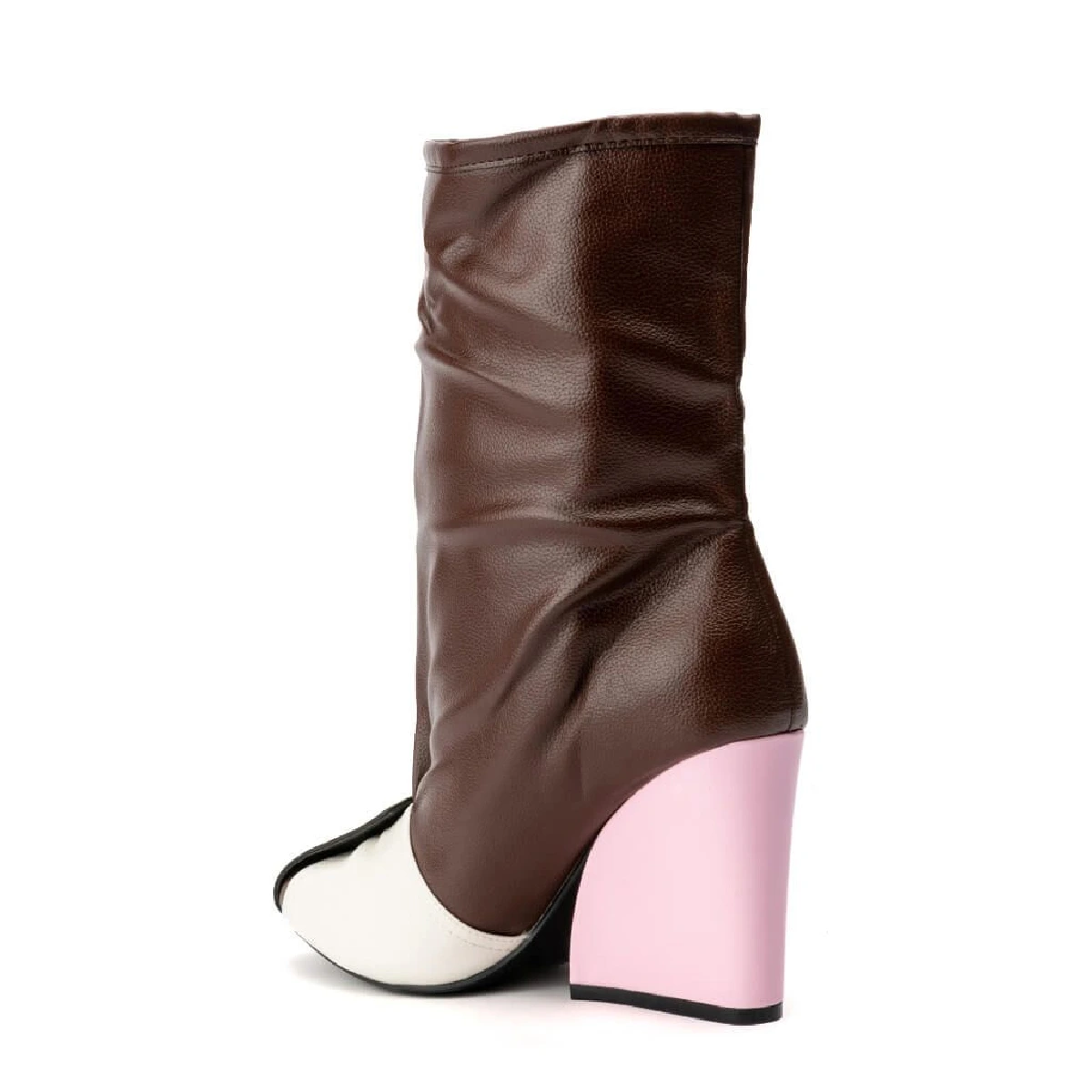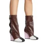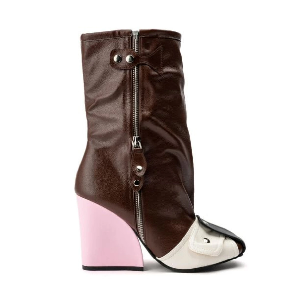 Zipper Leather Brown & Pink Long Boots
